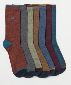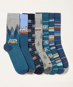Fat Face Men’s Multi 7 Pack Of Camper Stripe Socks In A Gift Box