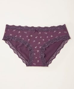Fat Face Women’s Purple Floral Stripe Classic Knickers | Purple