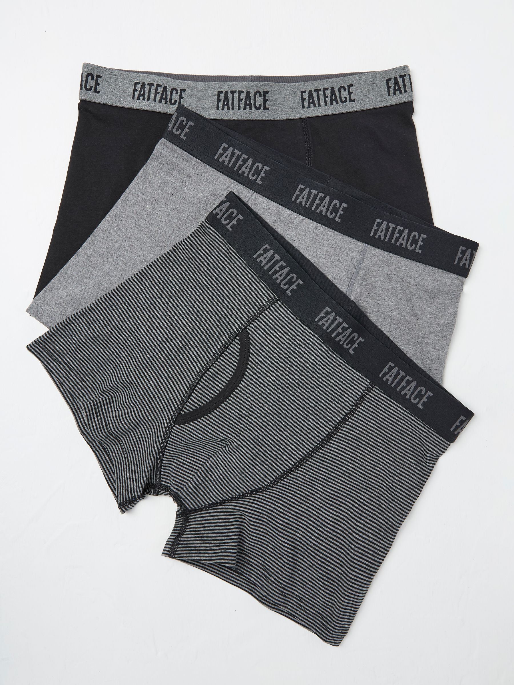 Fat Face Men’s Black & Grey Classic Boxers 3 Pack | Black & Grey
