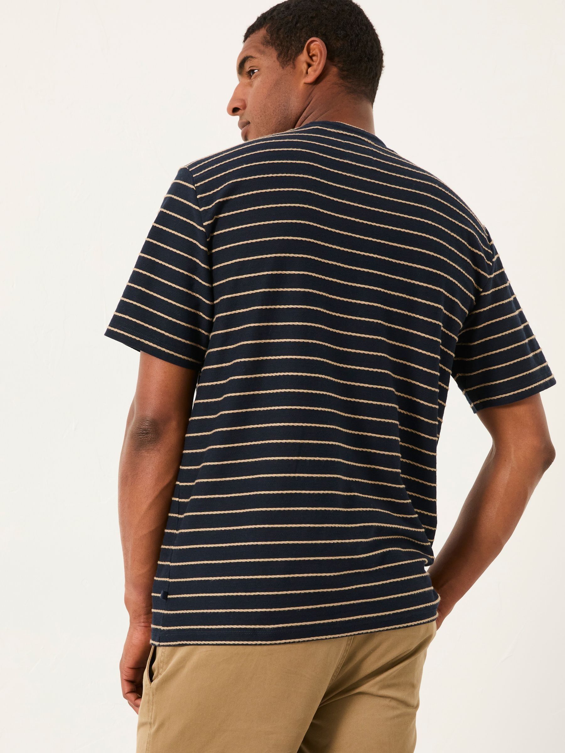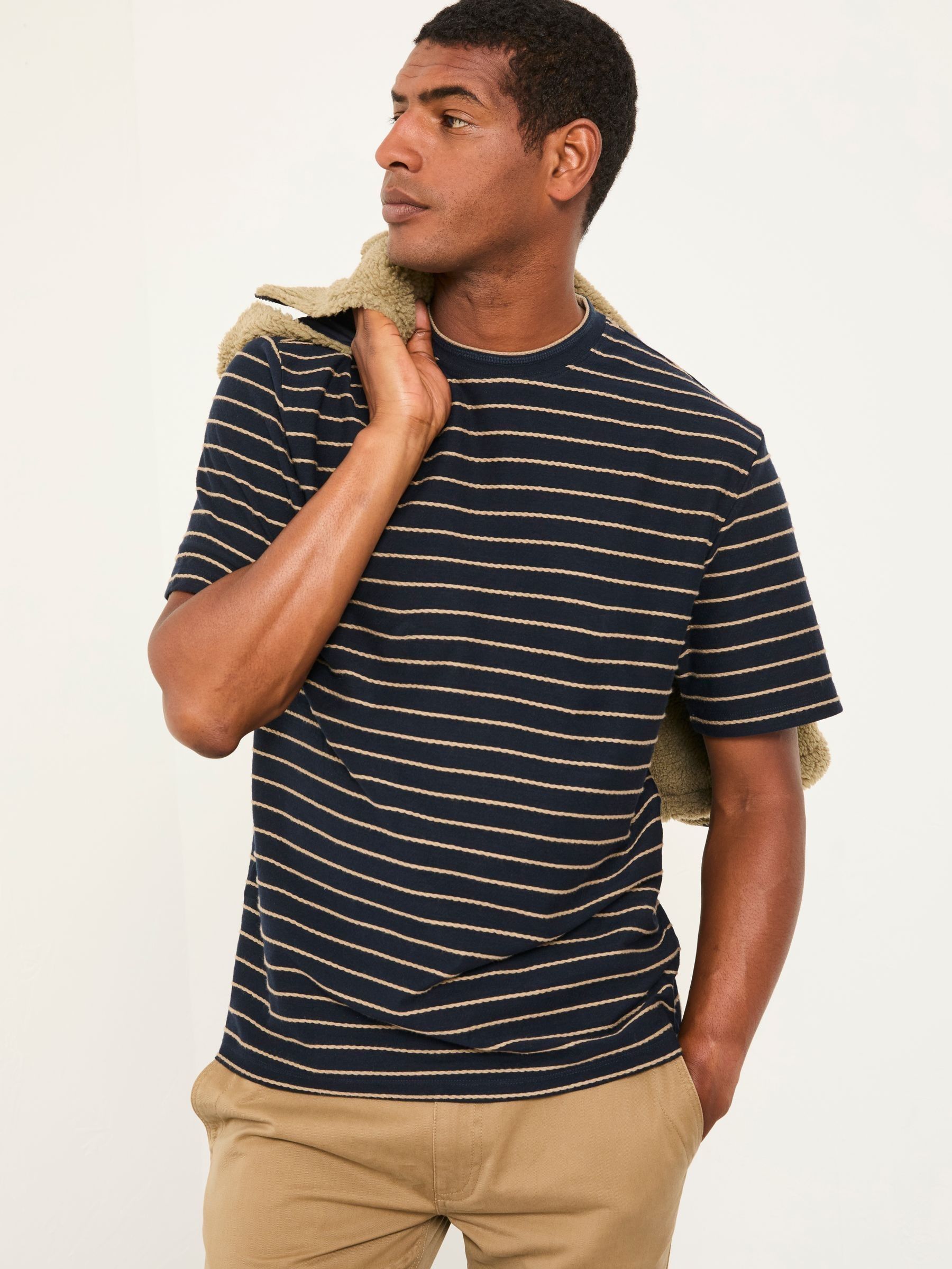Elevate your t-shirt collection with our new Colden relaxed fit tee. It features a timeless striped design while also being made from 100% cotton making this one super soft and breathable for all day wear. Pair with your favourite pair of jeans or shorts for an elevated everyday look.Model is 6’3”/191cm and wears UK size Medium