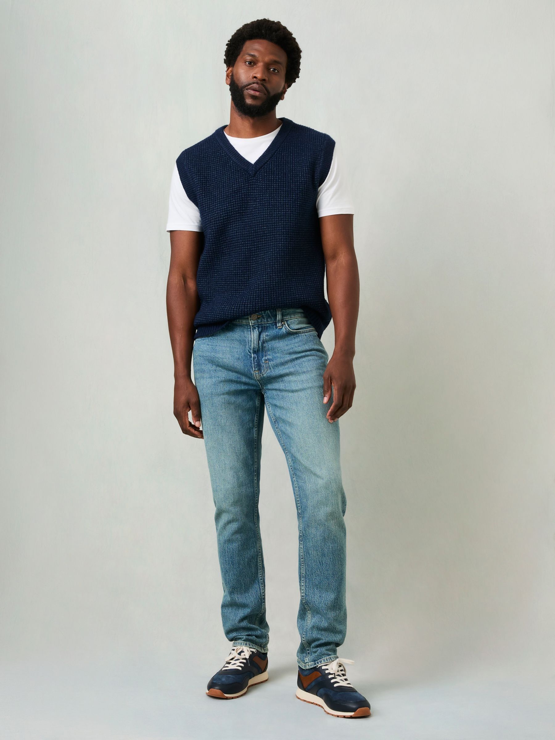 Our slim fit gradually slims from the hip to the ankle for a contemporary choice. We’ve added a touch of stretch for comfort and easy movement.They’ve also been given a wash before they get to you for an authentic look. Great for weekend wear when relaxing with friends. Try pairing it with a T-Shirt and trainers for a relaxed style.Slim Fit inside leg length 31" / 79cm.