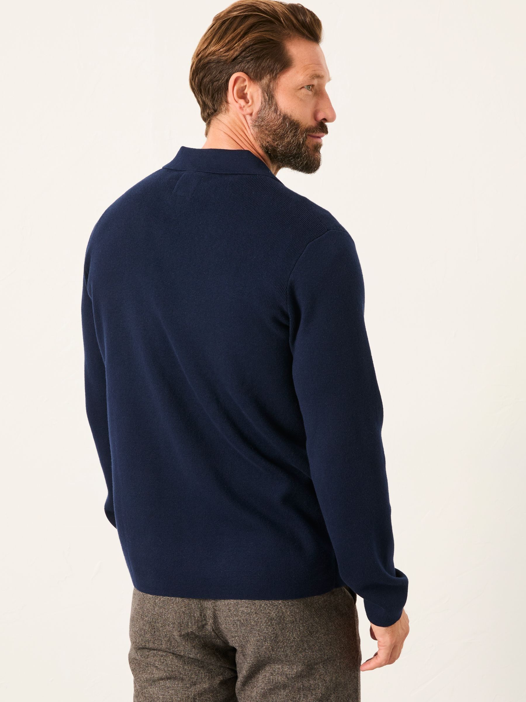 Upgrade your wardrobe with the perfect blend of style, comfort, and functionality. Our Helston Collared Zip-Up Cardigan is crafted from a soft cotton and cashmere blend. It features a structured collar for a smart, polished appearance and a full-length zip fastening for convenience and easy layering. It also has two front pockets for warming your hands or keeping your essentials close. Whether you’re heading to the office, grabbing coffee, or relaxing on the weekend, this cardigan offers versatile wear with a tailored finish.Model is 6’1”/185cm and wears UK size M