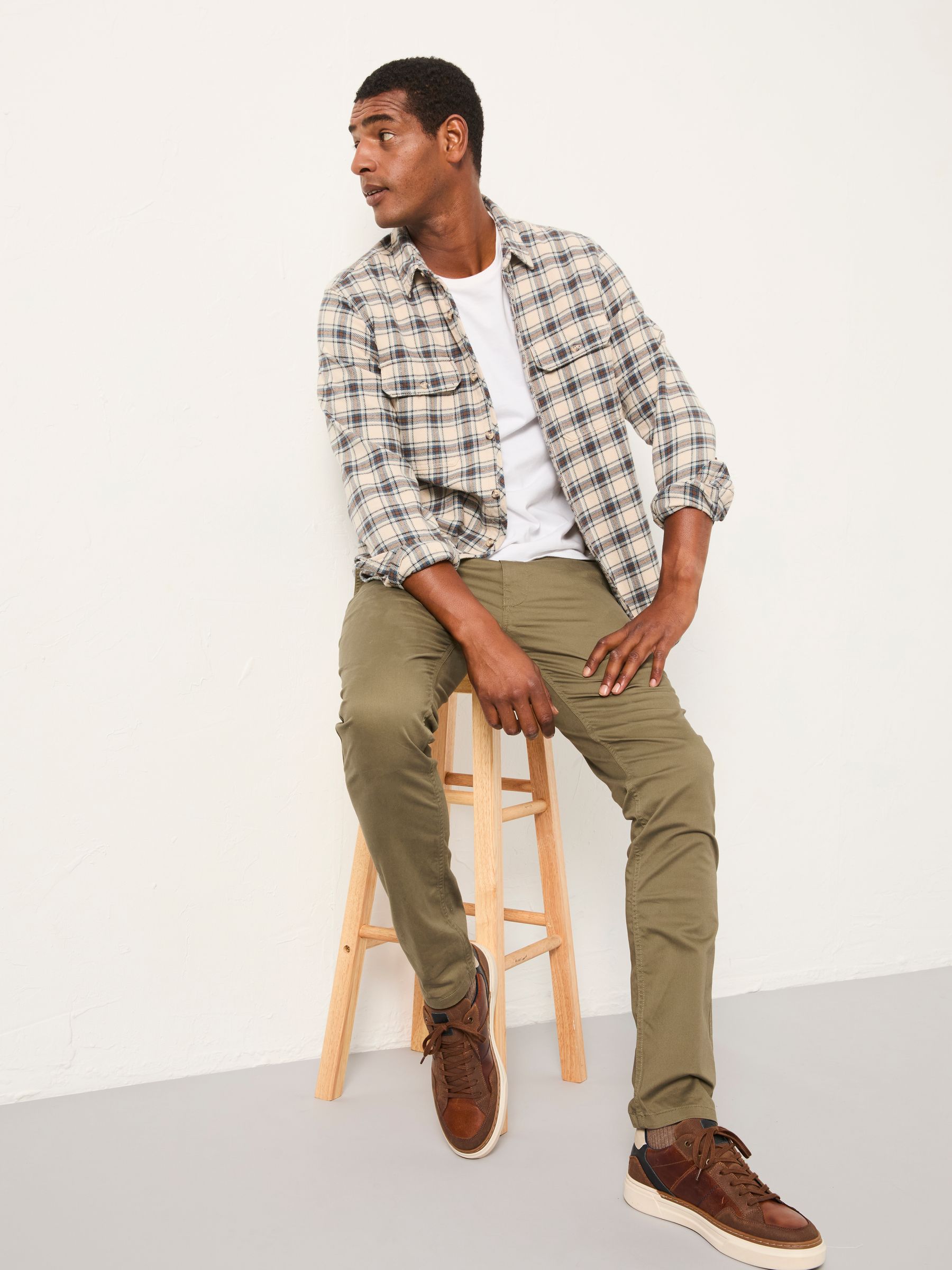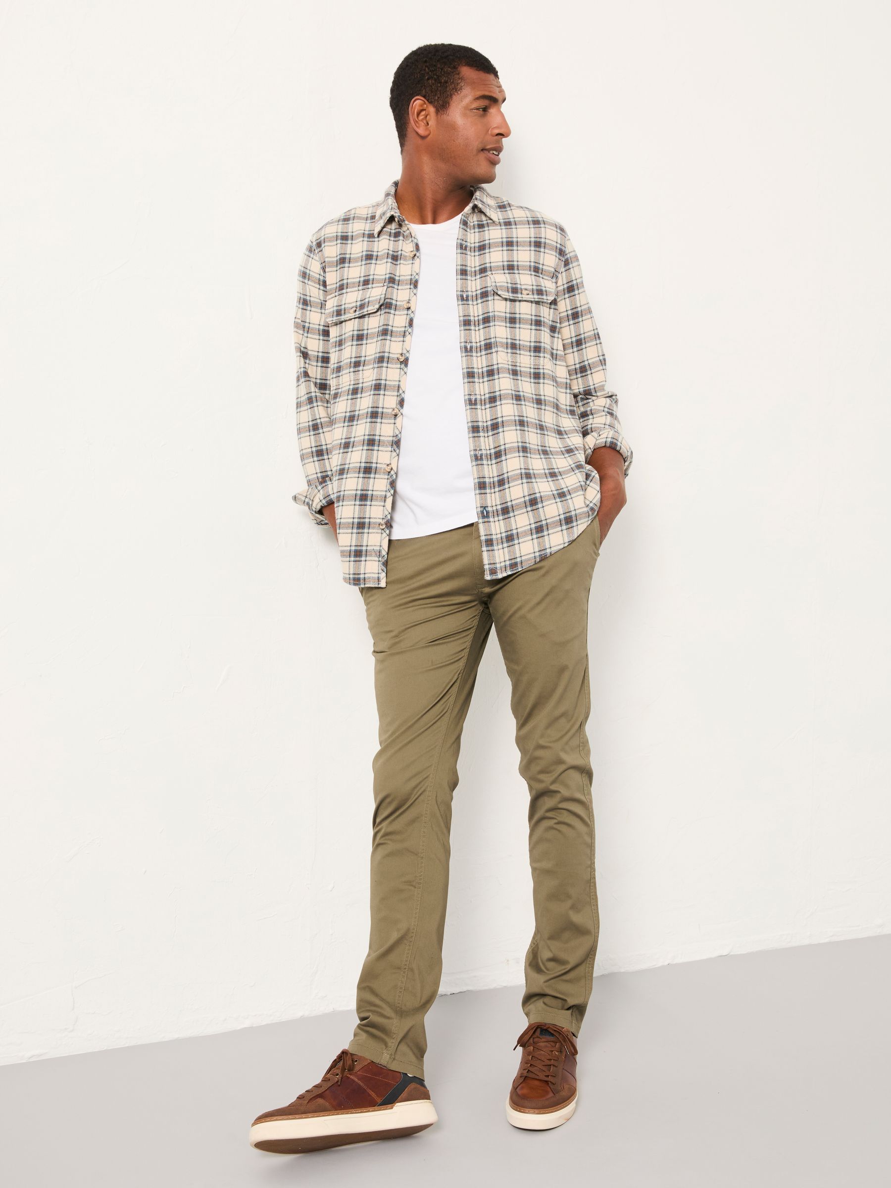 Made with lightweight yet hardwearing cotton with a touch of stretch for movement and comfort, these chinos are the perfect pair for casual days or dressing smart. In a comfortable slim fit, these simple trousers pack a big punch and boast plenty of pockets, belt loops and zip fly. Just pair with your go-to graphic T-Shirt, lightweight knit or relaxed sweatshirt.Breathable cottonPockets and belt loopsComfortable slim fitRegular inside leg length 31" / 79cm.Long inside leg length 33" / 84cm.