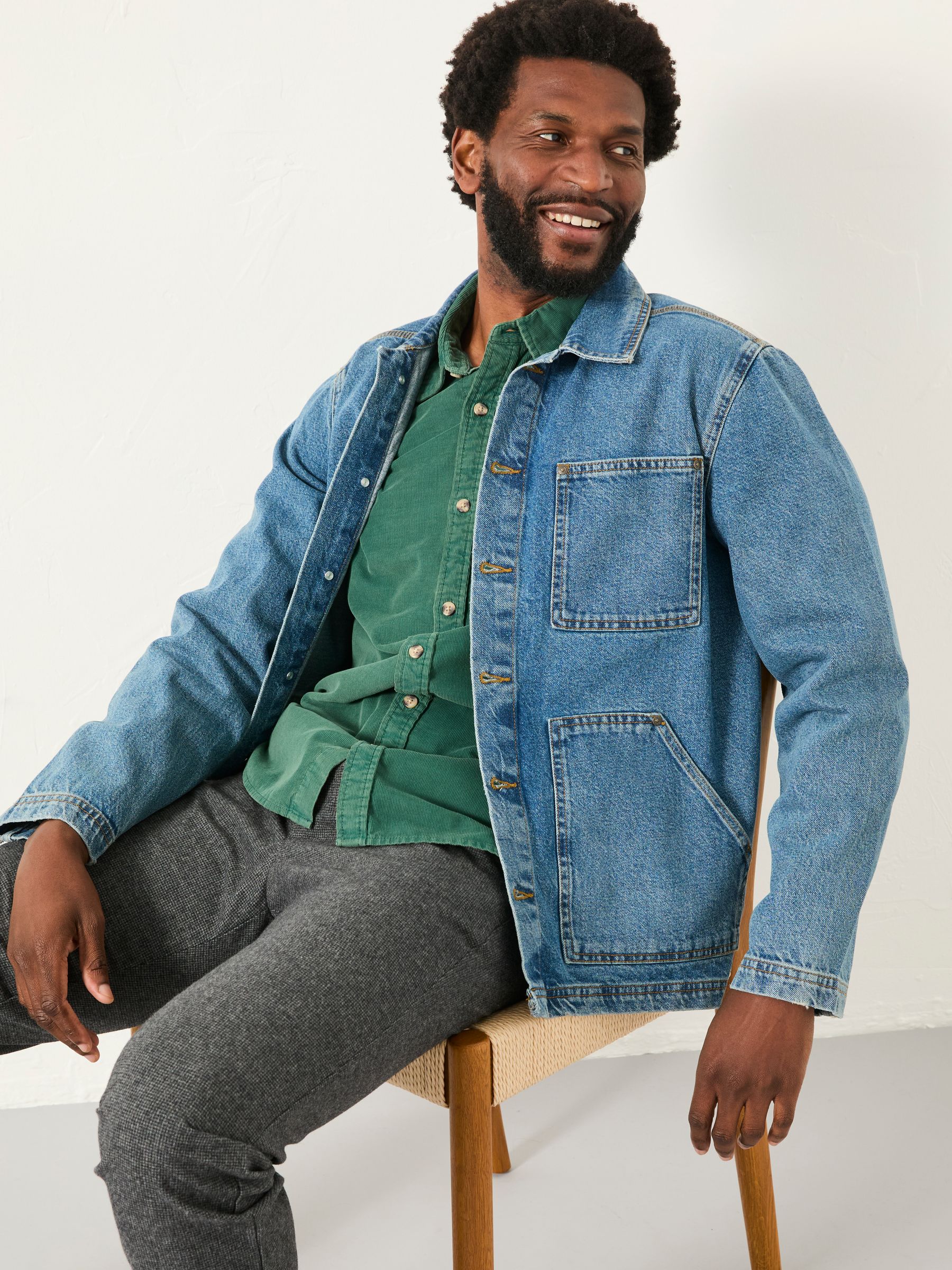 At FatFace, our jackets are designed for versatility and effortless styling for any occasion. Our denim worker jacket is the perfect embodiment of style, with large pockets to store all your essentials, a lightweight feel, and a stylish collar. It’s the ultimate seasonless staple to add to your wardrobe.Layer over a knitted jumper for those chillier days or throw it on over a t-shirt for a relaxed, layered look.Crafted from soft materials, it’s breathable and comfortable for all-day wear.