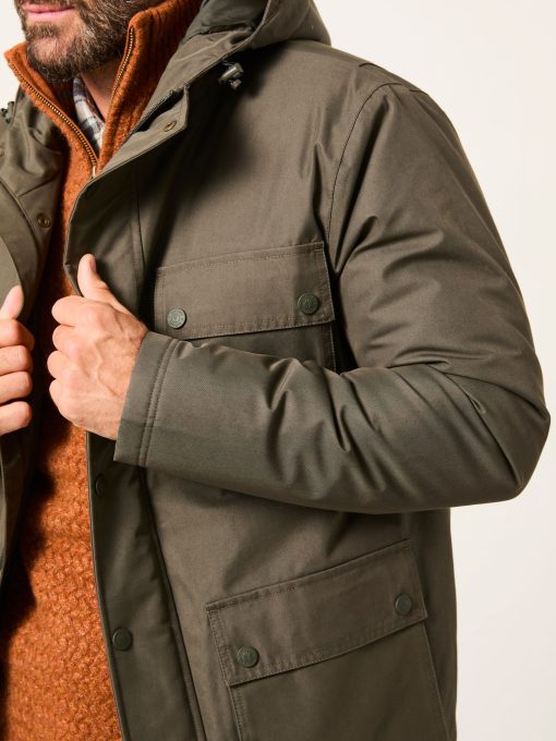 At FatFace, our jackets are versatile and easy to style for so many different occasions. This waterproof parka jacket is perfect for that everyday casual style. Featuring large internal and external pockets for all your essentials, a zipped placket and a tipped hood to protect from rainy weather, it is that staple jacket to add to your wardrobe. Layer over a knitted jumper for those colder days or pop on over a T-Shirt for a light layered look.Model is 6’1”/185cm and wears UK size MRegular centre back neck to hem 30" / 76cm.