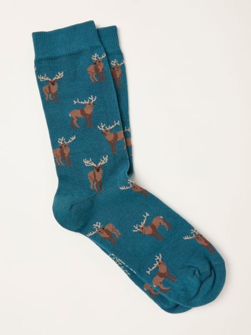 Fat Face Men’s Teal Blue Moose Socks