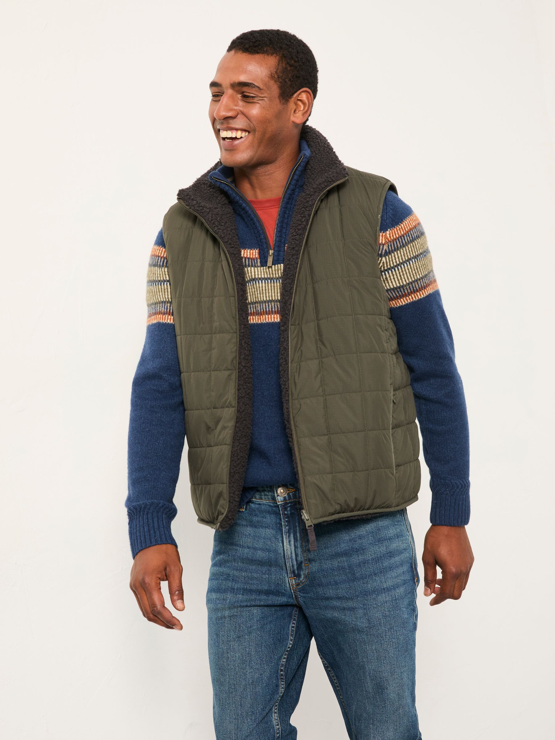 Made from 100% recycled polyester, our Tromso reversible gilet is timeless, stylish and a reliable layer of warmth. It features a funnel shape, cosy fleece lining and a secure popper fastening to keep out the cold. It’s also packed with pockets on both sides for stuffing cold hands or essentials. Add extra layers to make this gilet as warm as you need it to be. With its reversible design, you can wear it two ways making this gilet a staple in your wardrobe.Model is 6’3”/191cm and wears UK size MediumRegular centre back neck to hem 28" / 71cm.