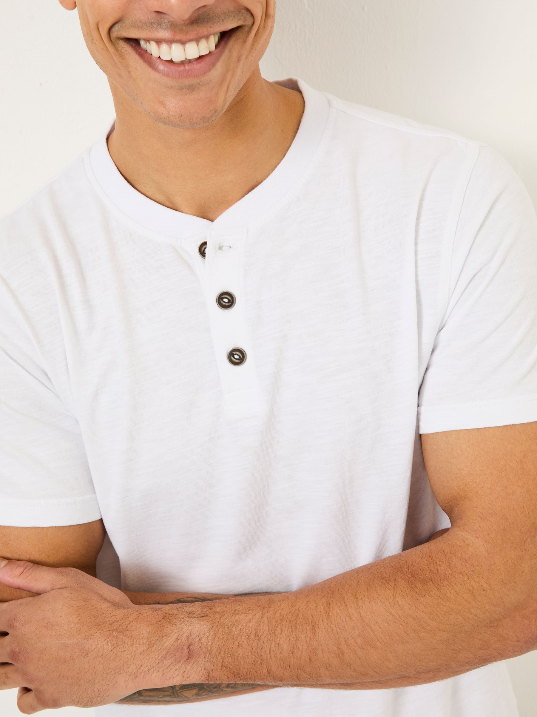 If there’s anything you can count on, it’s a Henley T-Shirt to keep you looking and feeling great. The Woodside combines cotton, a classic Henley button placket, short sleeves and a regular fit to bring you that just-right feeling day after after. Wear this fan-favourite with comfortable stretch denim for a timeless daytime look or take it up a notch and layer it with an open-button shirt.Made using cotton