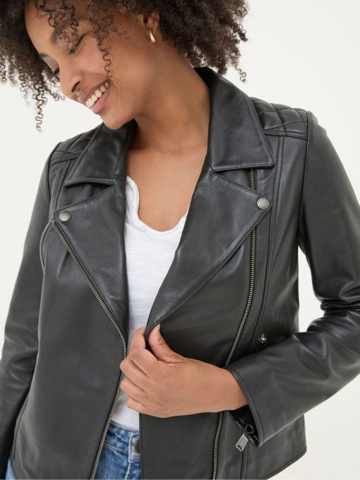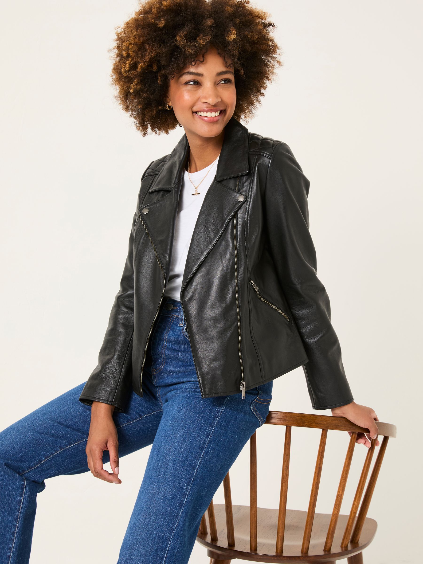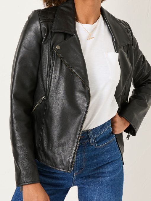Here’s a piece everyone should have in their wardrobe. Our Bethany Quilted Biker Jacket is a tried-and-true favourite that complements just about every ensemble. It’s packed with amazing features such as an asymmetric zip, quilted back yoke, side pockets and zip-up cuffs. Made with soft, supple leather that makes it endlessly wearable, this jacket is truly a timeless style icon that you’ll be wearing for years to come. Soft, supple leather Classic biker style Asymmetric zip Zipped slanted hand pockets Quilted detail on the back of the neckModel is 5’9”/175cm and wears UK size 8Regular centre back neck to hem 23" / 59cm.