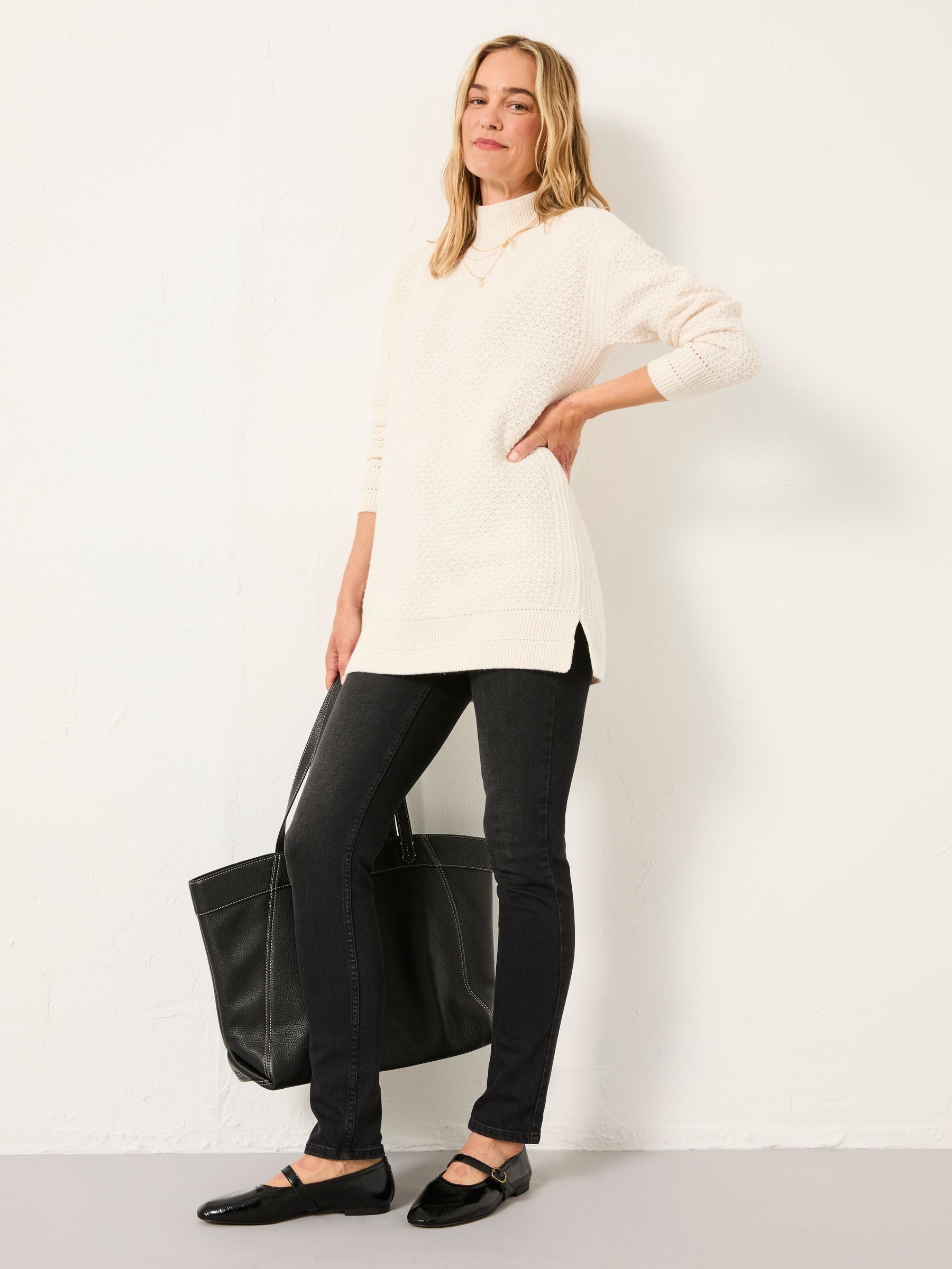 Elevate your cold-weather wardrobe with our Blair funnel neck long line knitted jumper – a cozy yet refined staple designed for effortless layering. The soft funnel neck and relaxed longline fit offer all-day comfort, while its timeless style makes it easy to dress up with boots and statement accessories or down with leggings and trainers. Perfect for everything from relaxed mornings at home to chic outings in the city.