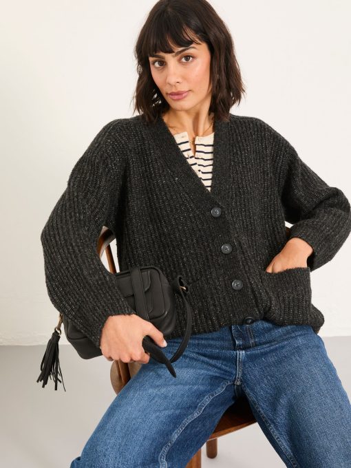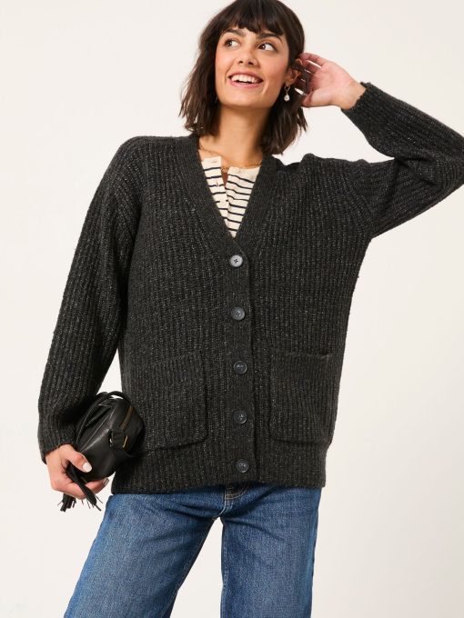Stay stylish and cosy all day long in our Blanche knit cardigan, featuring a flattering v-neckline, cuffed sleeves and waistline, large front pockets and chunky buttons. Crafted from a soft fabric blend and an oversized fit, this cardigan is comfortable and ready to wear with all your favourite outfits. Whether you need a light layer over a dress or pairing with a staple pair of denim jeans for everyday wear, our Blanche cardigan will be your new favourite cosy piece.