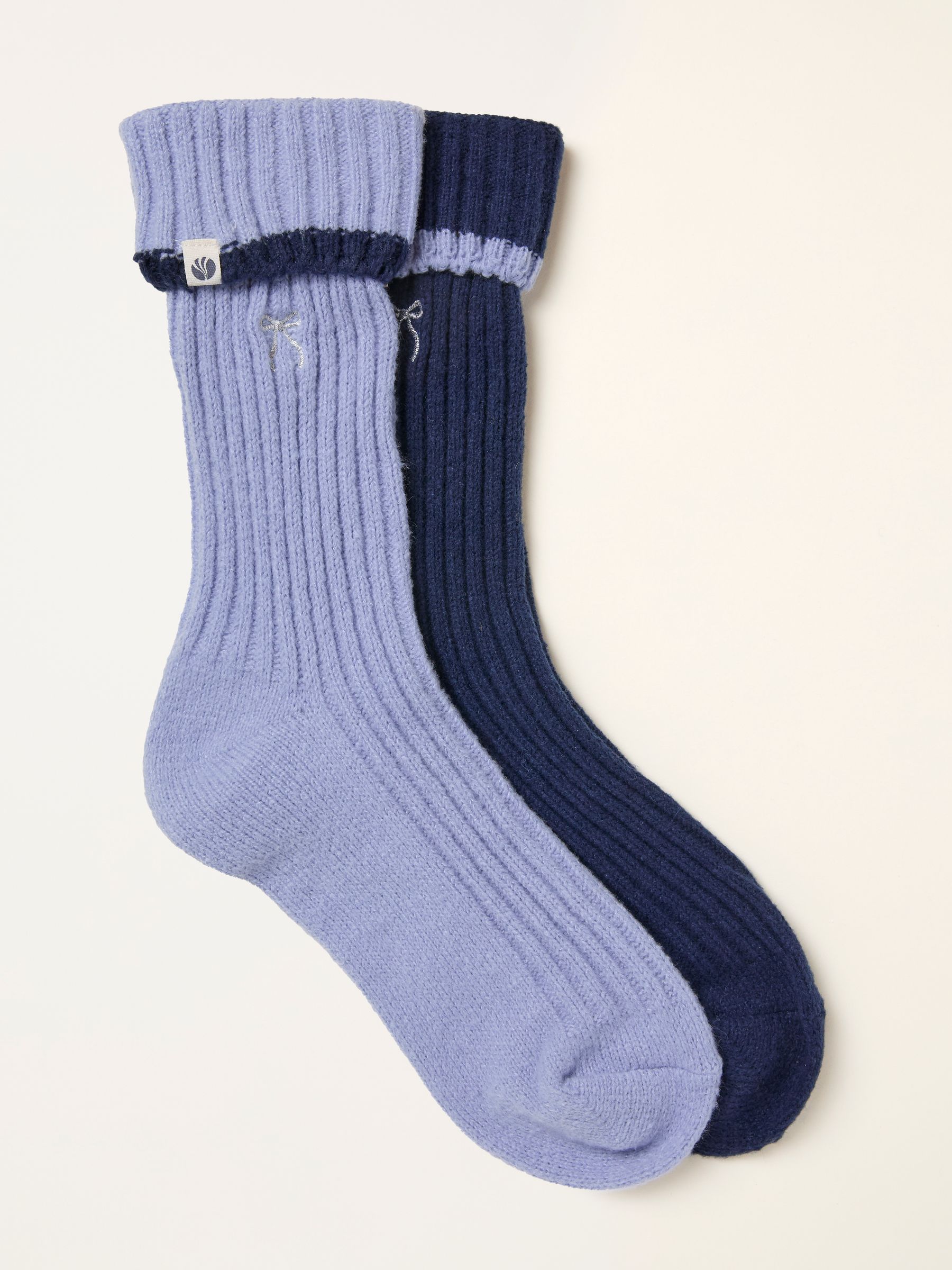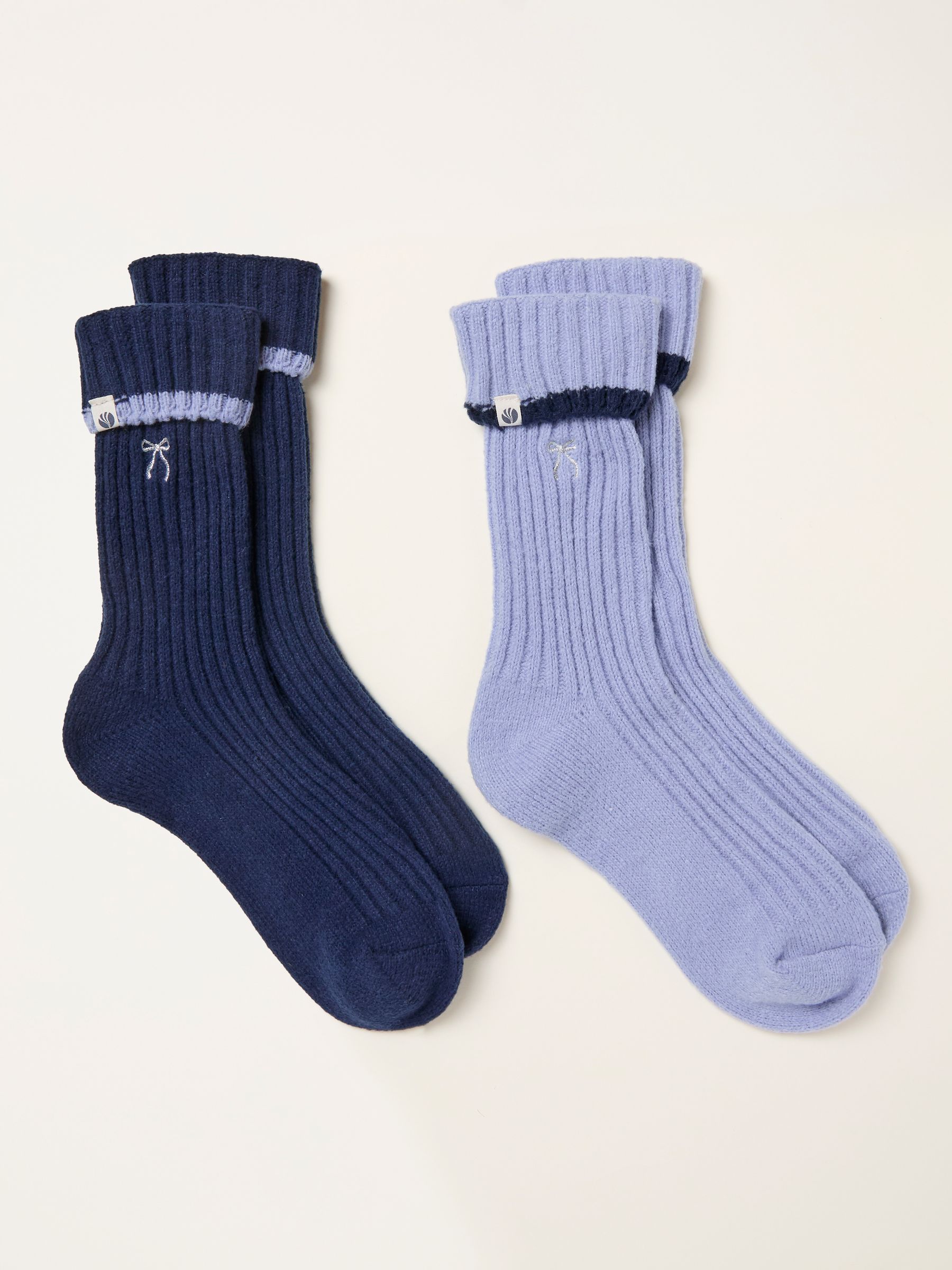 Fat Face Women’s Blue 2 Pairs Of Super Soft Bow Socks