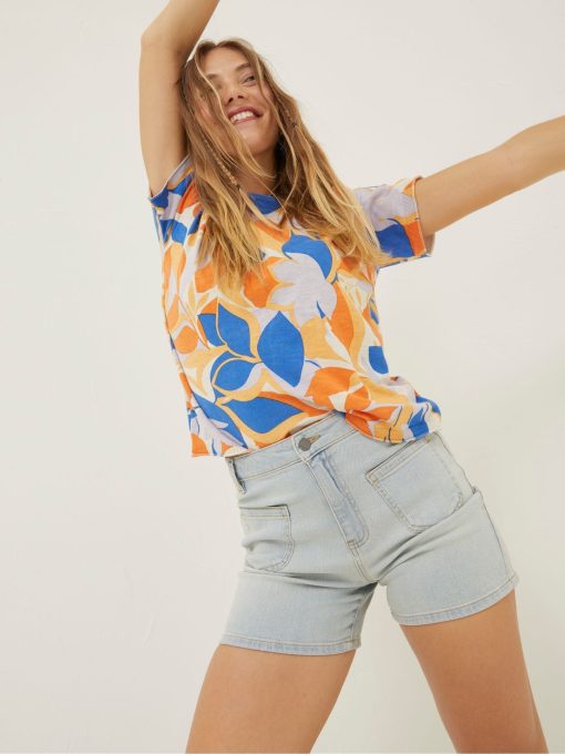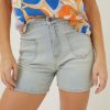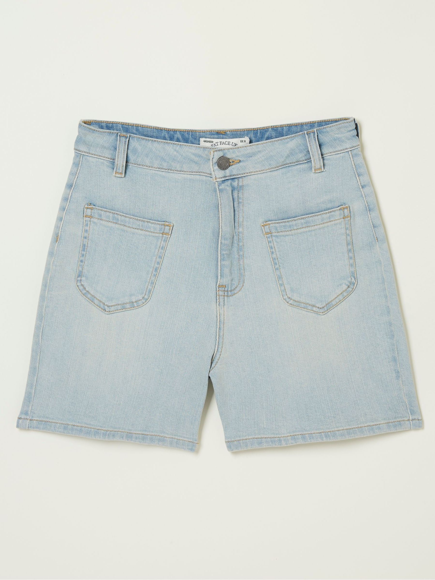 Prepare for warmer days with our flattering Paige Button Flare Blue Shorts. Perfect for everyday wear, they are made from long-lasting denim, come in a comfortable fit and feature multiple pockets and button fastening. Finish the look with a graphic tee and trainers, or layer up with tights and a cardigan.Regular inside leg length 4.5" / 12cm.