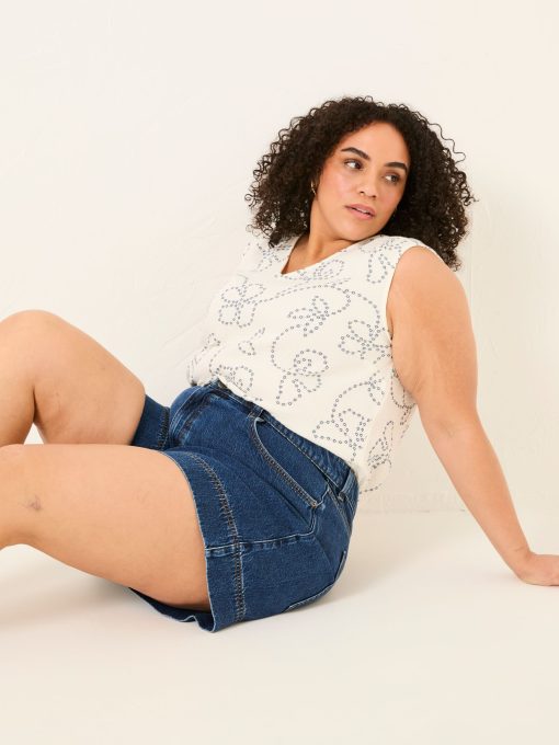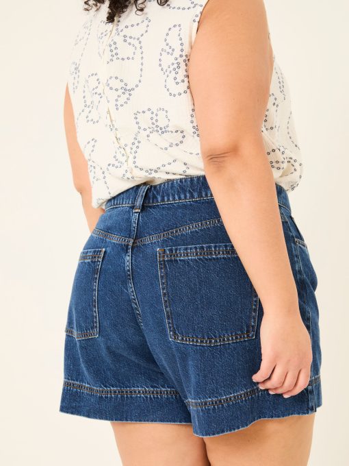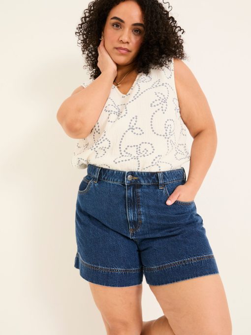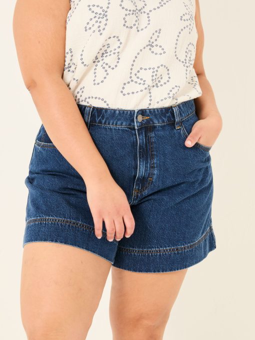 Keep it classic with our denim shorts, crafted from 100% cotton for a comfortable fit that gets better with every wear. Breathable and versatile, they’re perfect for sunny days, weekend adventures, and laid-back lounging. Keep it casual with a top and trainers or elevate the look with a blouse and sandals – your go-to summer staple.Model is 5’8”/173cm and wears UK size 18Regular inside leg length 5.5" / 14cm.