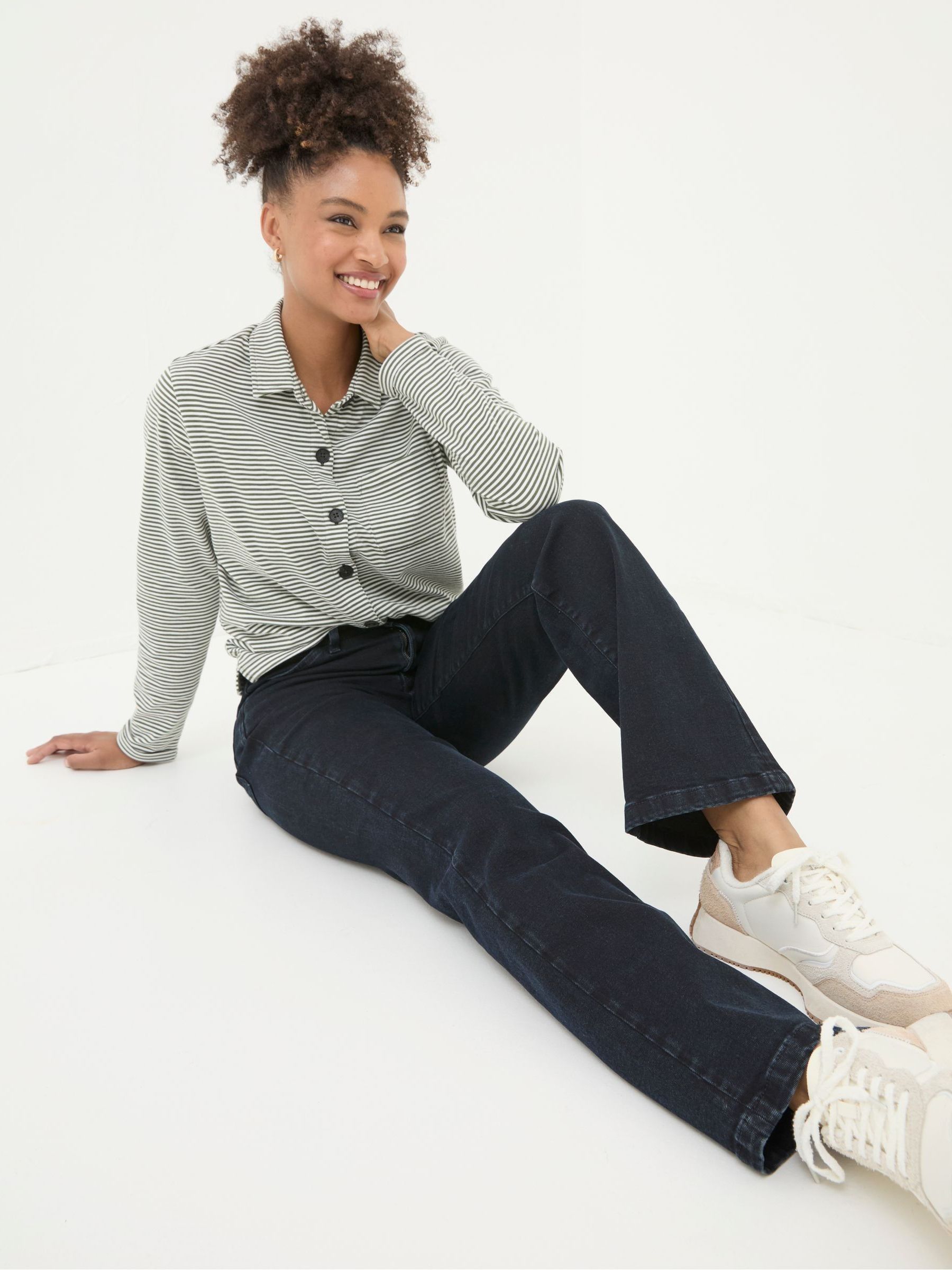 These wide leg jeans come in a relaxed and stylish fit for a modern look and feel. We’ve added pockets on the sides and back for a classic look, and a hint of stretch in the fabric provides extra comfort and movement.Wide from the hips to the ankle High rise Perfectly balances proportionsModel is 5’9”/175cm and wears UK size 8