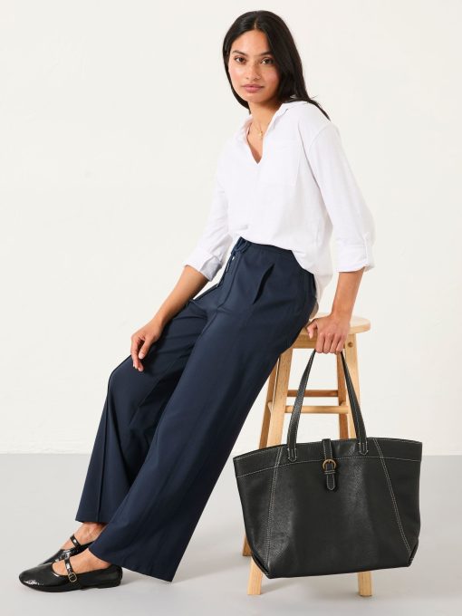 Looking for that perfect pair of trousers that are versatile and easy to style? Look no further. Our Ely wide leg trousers are the perfect mix of smart and casual. Their sleek silhouette makes them an effortless choice to look put together for dinner and drinks or office days, just pair with a blouse and some loafers. But their soft fabric makes them easy to dress down if paired with trainers and your favourite comfy sweatshirt. With a wide leg shape, these trousers offer a flattering fit while remaining lightweight and comfortable enough to wear all day.Model is 5’9”/175cm and wears UK size 8Short inside leg length 25" / 64cm.Regular inside leg length 27" / 69cm.Long inside leg length 29" / 74cm.