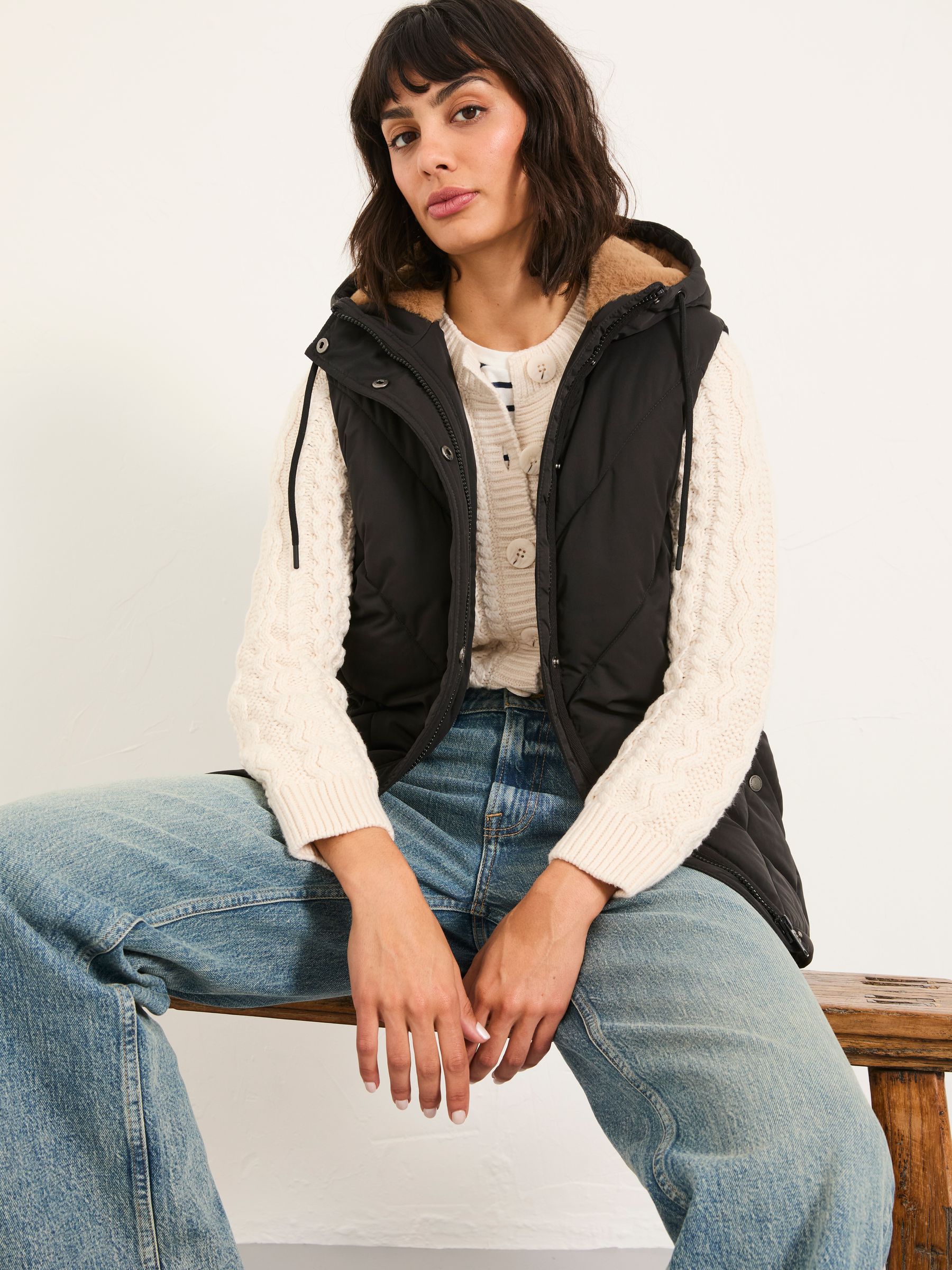 This lightweight black gilet is timeless, stylish and a reliable layer of warmth. It features a stylish shape, cosy fleece lining and a secure zip fastening to keep out the cold. It’s also packed with pockets on the inside and out for stuffing cold hands or essentials. Add extra layers to make this gilet as warm as you need it to be.