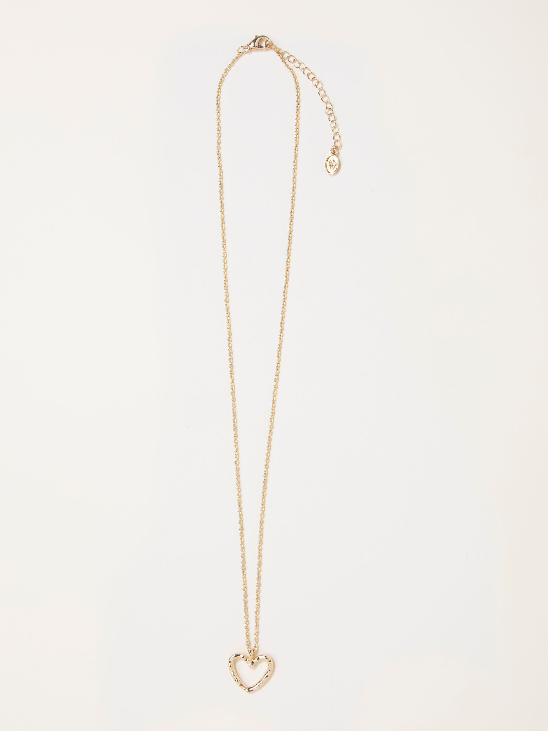 Make a statement with our necklaces. It features a hammered gold toned heart pendant, perfect for elevating your look from day to night.