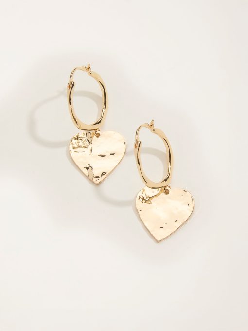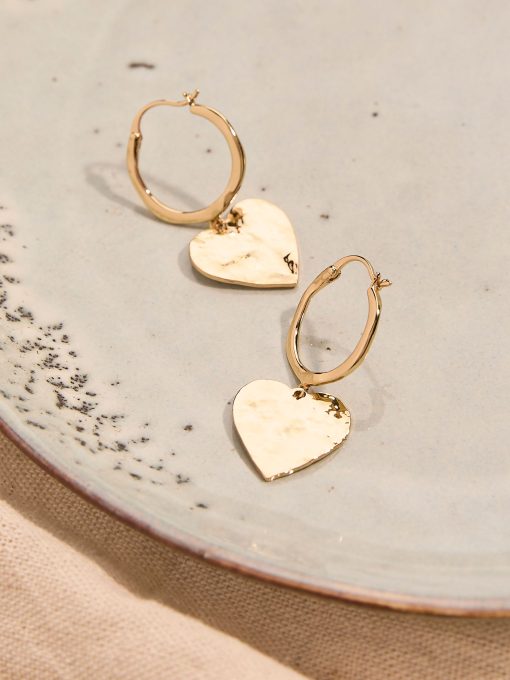 Fat Face Women’s Gold Tone Large Hammered Heart Earrings