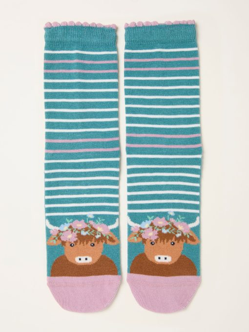 Fat Face Women’s Green Highland Cow Socks | Green