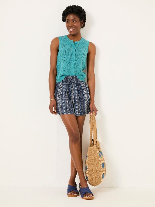 Our flippy shorts are the ultimate summer essential, whether you need a lightweight bikini cover-up or a stylish pair for dinner and drinks on vacation.Crafted from soft, breathable 100% LENZING™ ECOVERO™ Viscose, these shorts feature a drawstring and shirred waist for a comfortable, adjustable fit. With their loose silhouette and vibrant shell print, they’re the perfect choice for sunny beach days.Model is 5’9”/175cm and wears UK size 8Regular inside leg length 4.5" / 12cm.