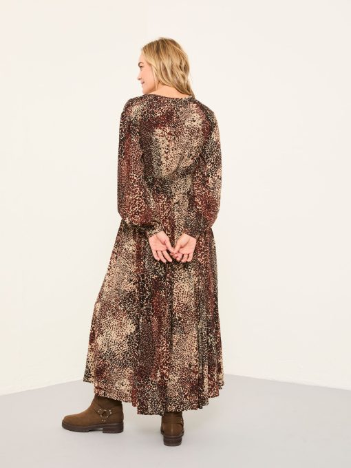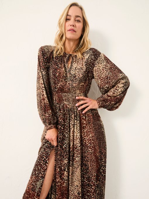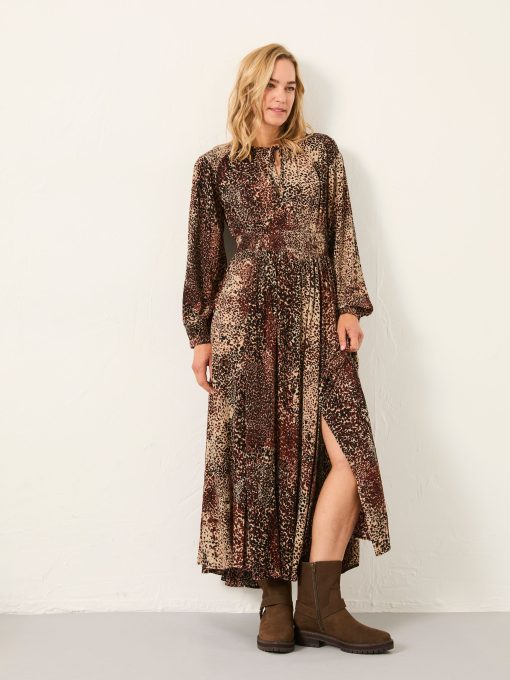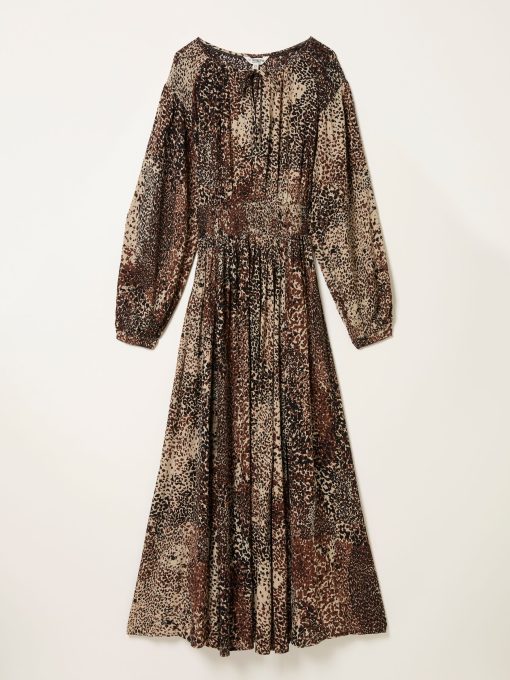 Fat Face Women’s Jaqs Light Brown Layered Animal Petite Midi Dress