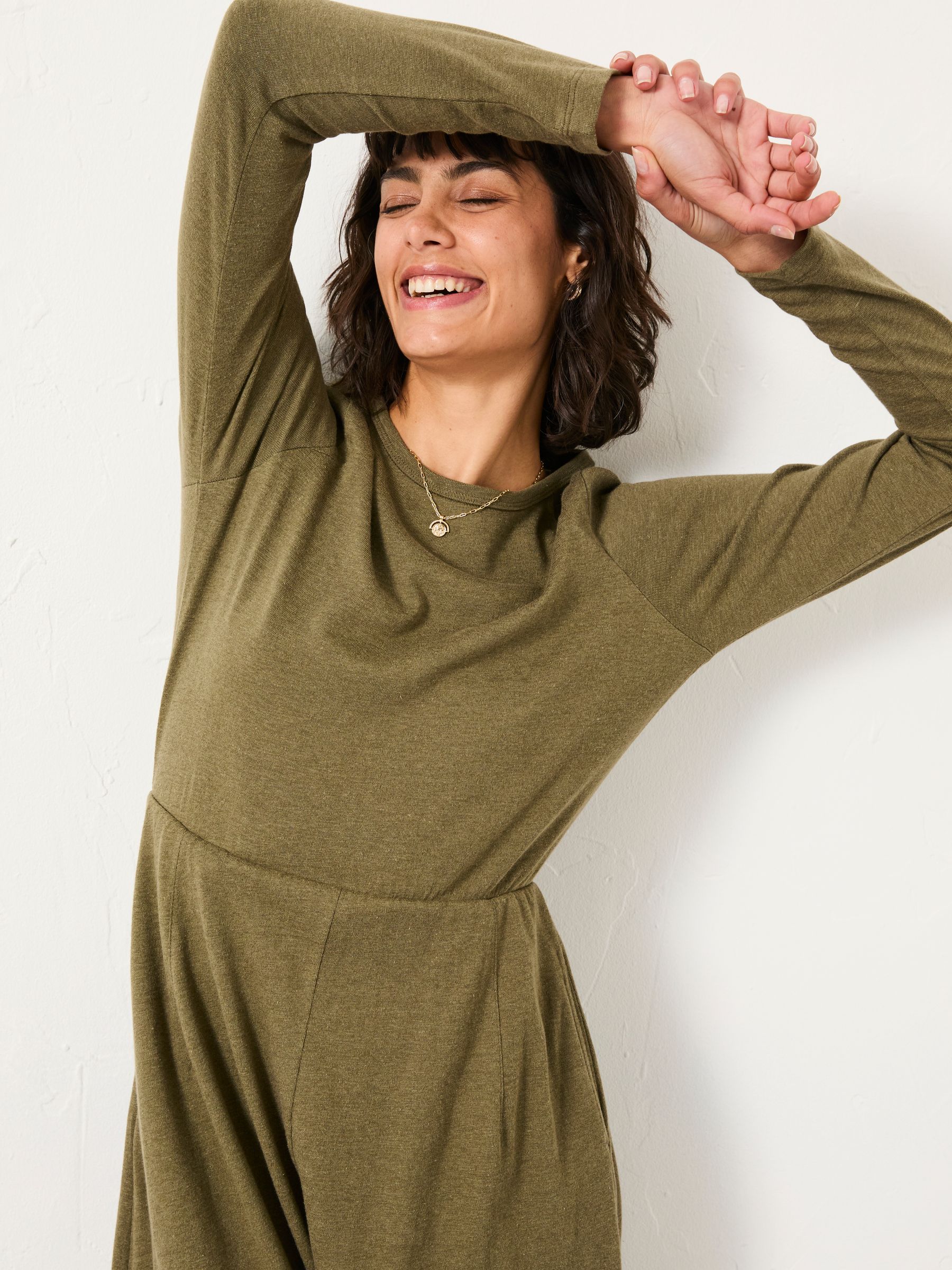 The Jonie is a perfect dress for all seasons – wear it with boots and a cardi on chillier days or wear solo with some trainers for weekend coffee runs. Made with cuffed 3/4 length sleeves and a comfy jersey material, it also has pockets for everything you need to take with you.