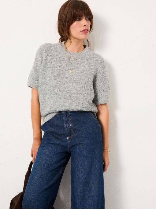 Stay effortlessly chic and comfortable in our Keira fluffy short sleeve knitted t-shirt. Crafted from a soft, textured knit, this tee offers a gentle, cosy feel with a lightweight touch – perfect for layering or wearing on its own. The short sleeves and relaxed fit make it ideal for transitional weather, adding a subtle yet stylish texture to your everyday wardrobe.Model is 5’8”/173cm and wears UK size 8