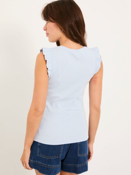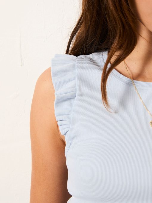 You can never have too many wardrobe essentials, and our frill sleeveless top is here to elevate yours. It is soft with a fitted feel – the perfect addition to your everyday lineup. Pair it with denim jeans for a casual weekend stroll or layer it with a jacket on cooler days. The round neck, sleeveless design and frill detail add a classy touch to any look, making it an effortless way to upgrade your style.Model is 5’8”/173cm and wears UK size 8