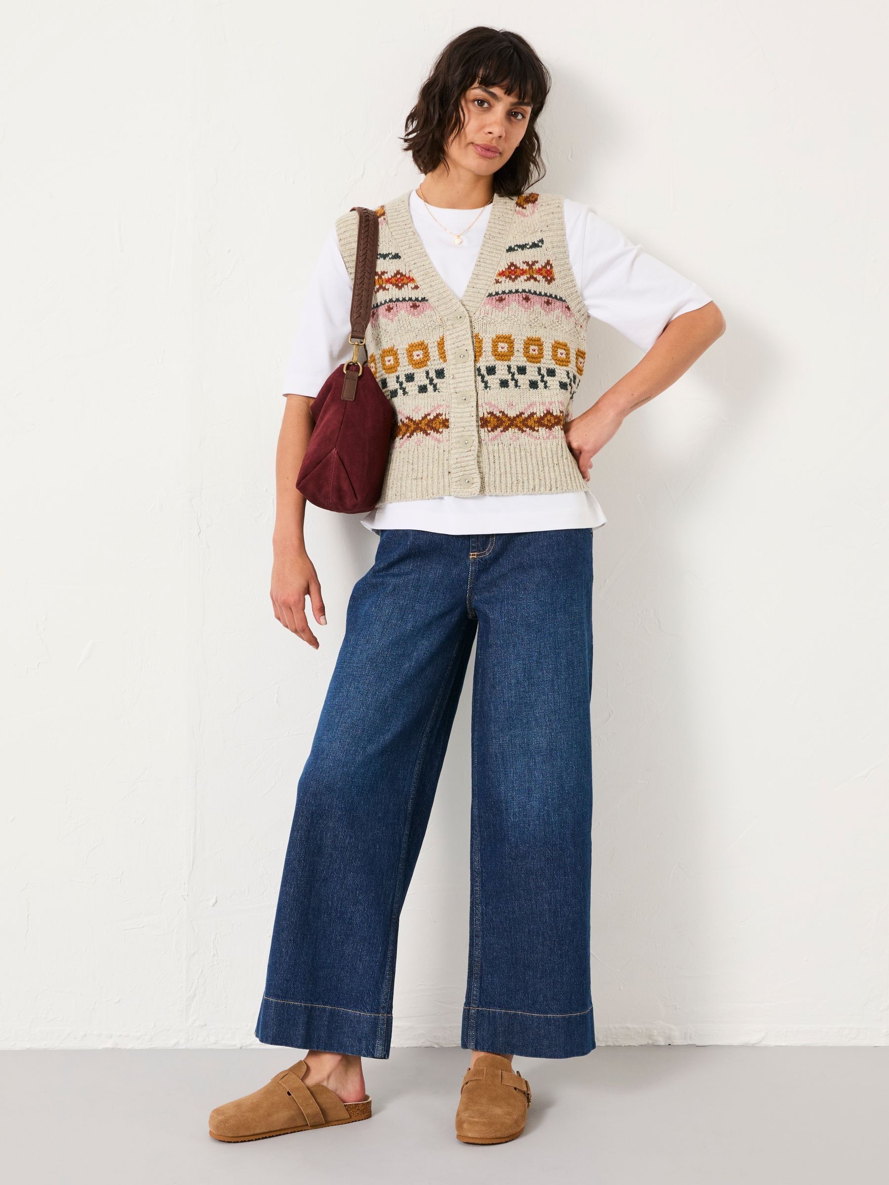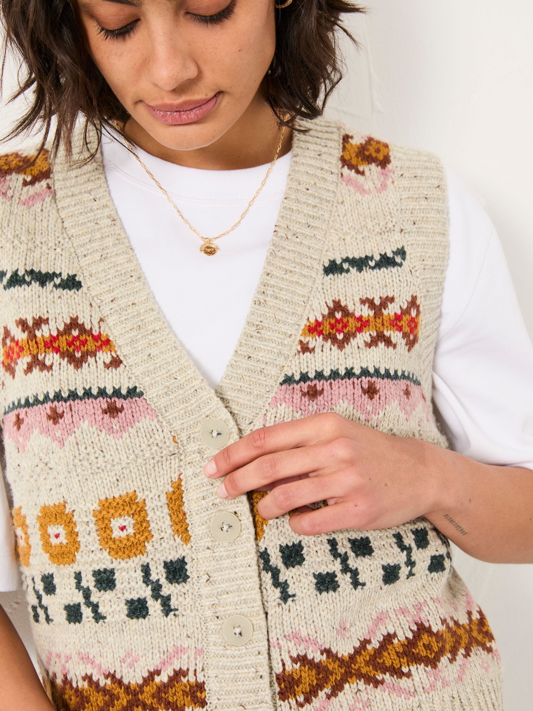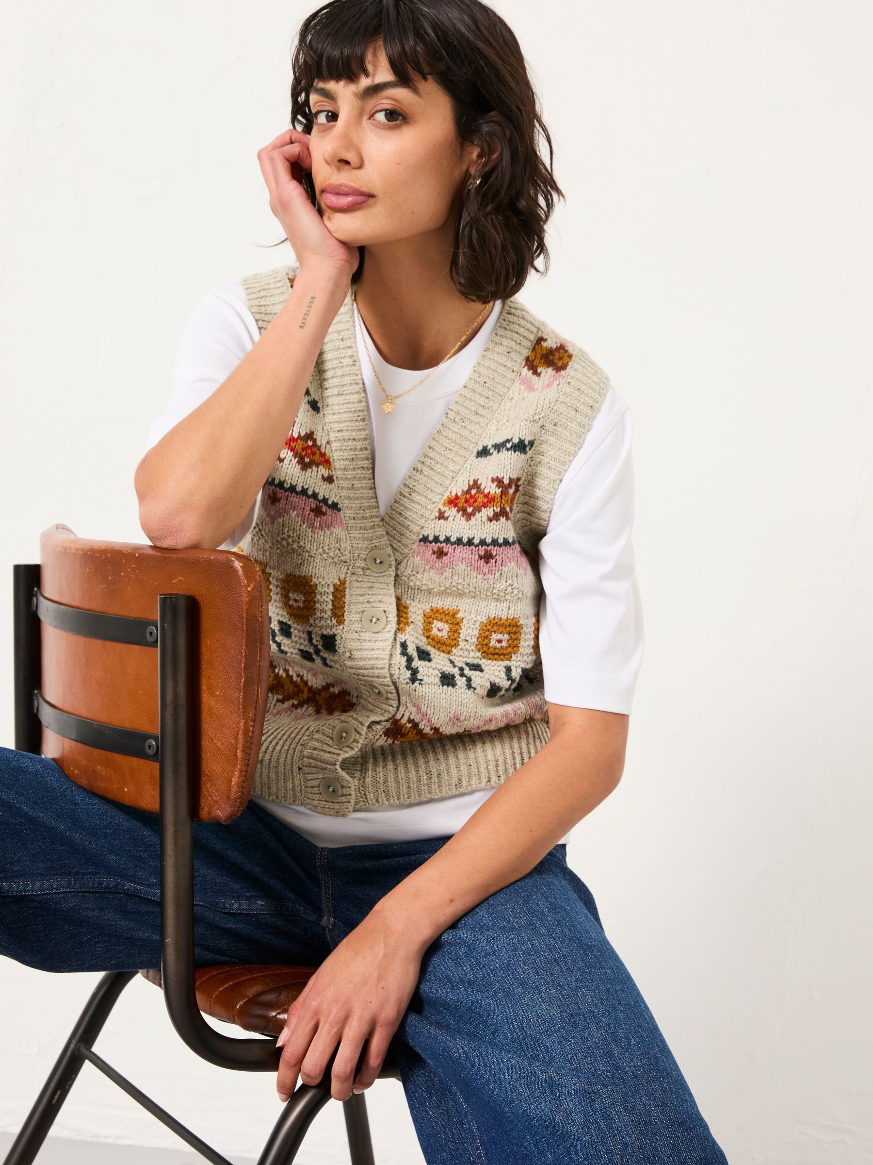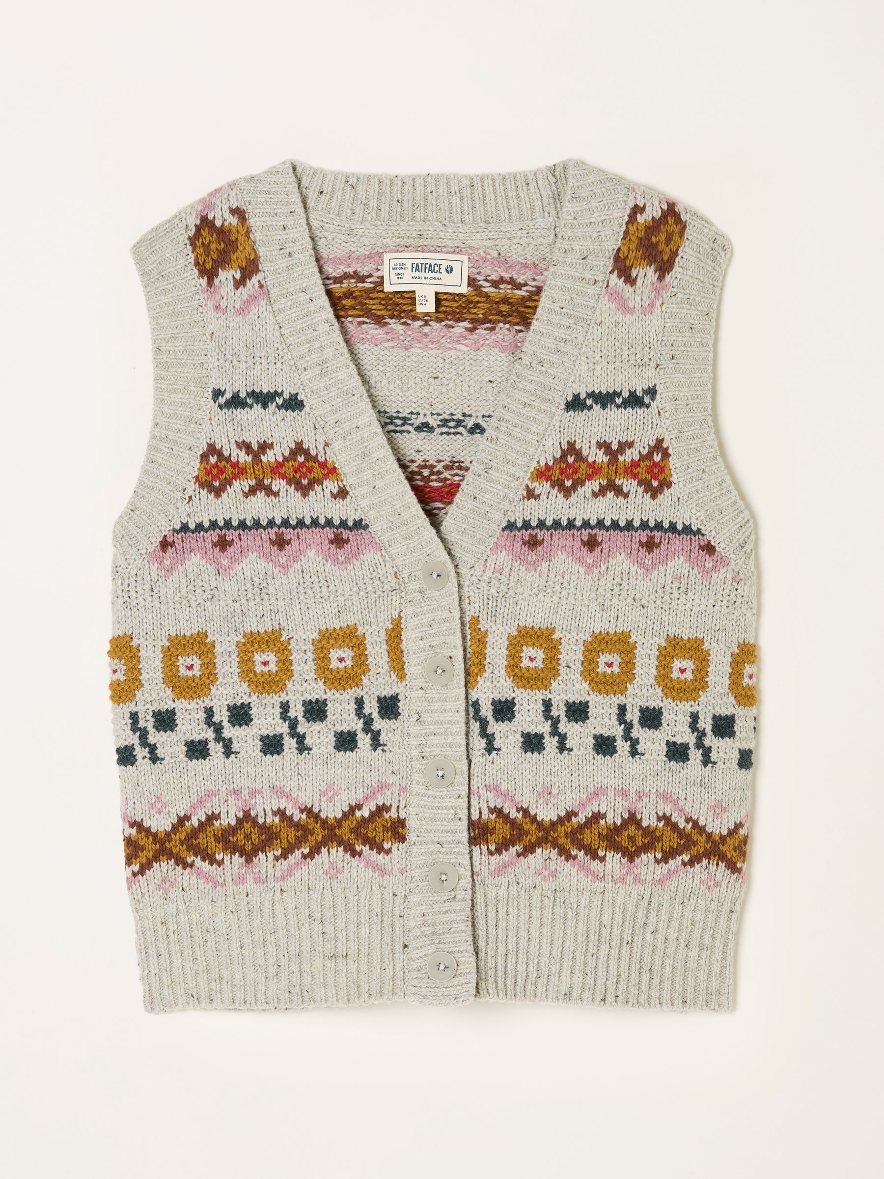 Fat Face Women’s Lupin Mid Grey Knitted Floral Pattern Waistcoat