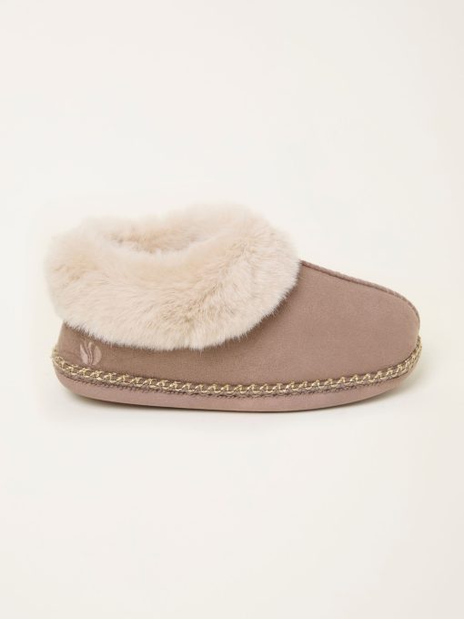 Supersoft, comfortable and with a cute faux fur trim, these slipper boots are perfect for all your cosy evenings and lazy days. They have rubber soles for grip and are finished beautifully with contrast stitch detailing.