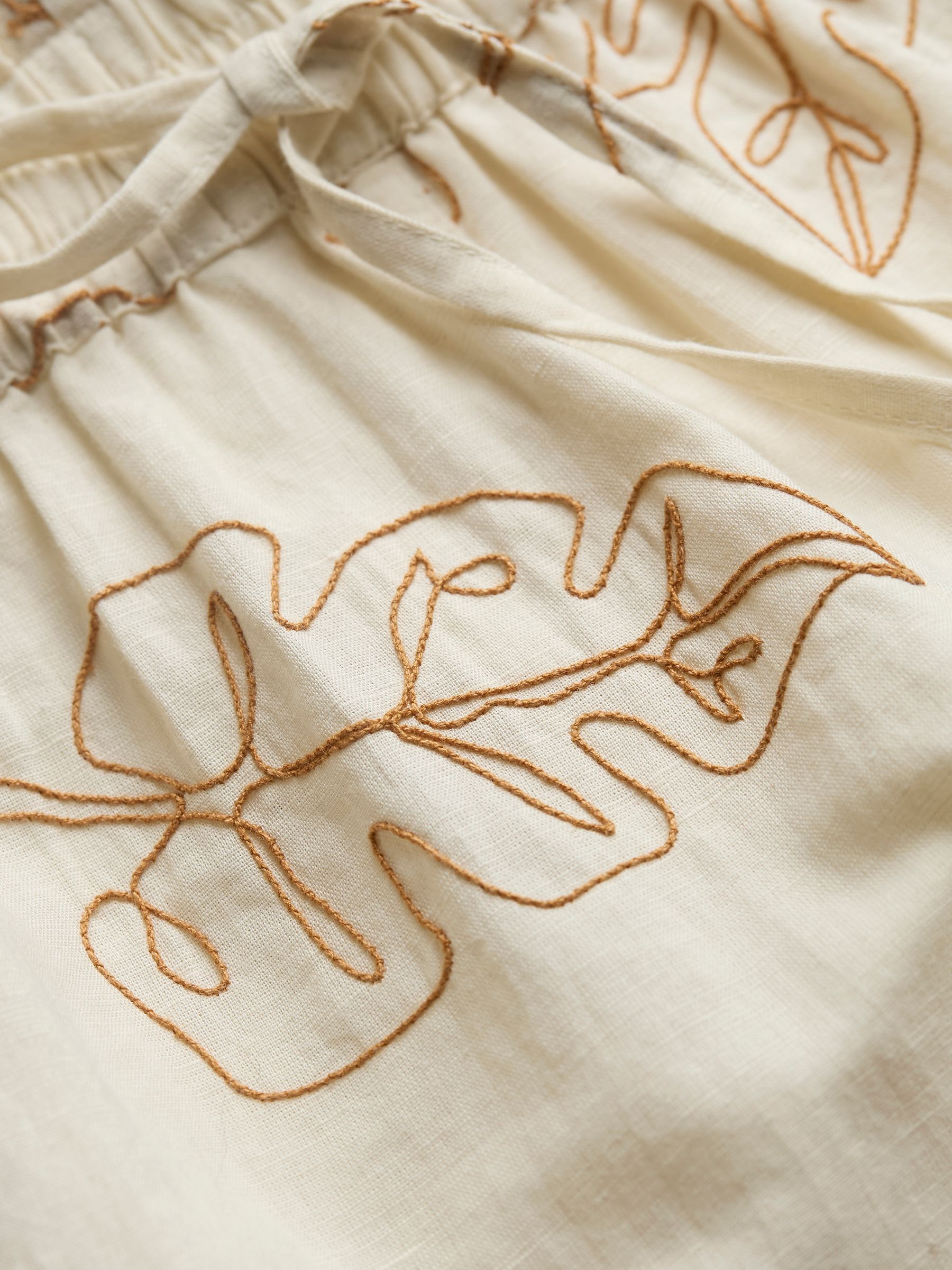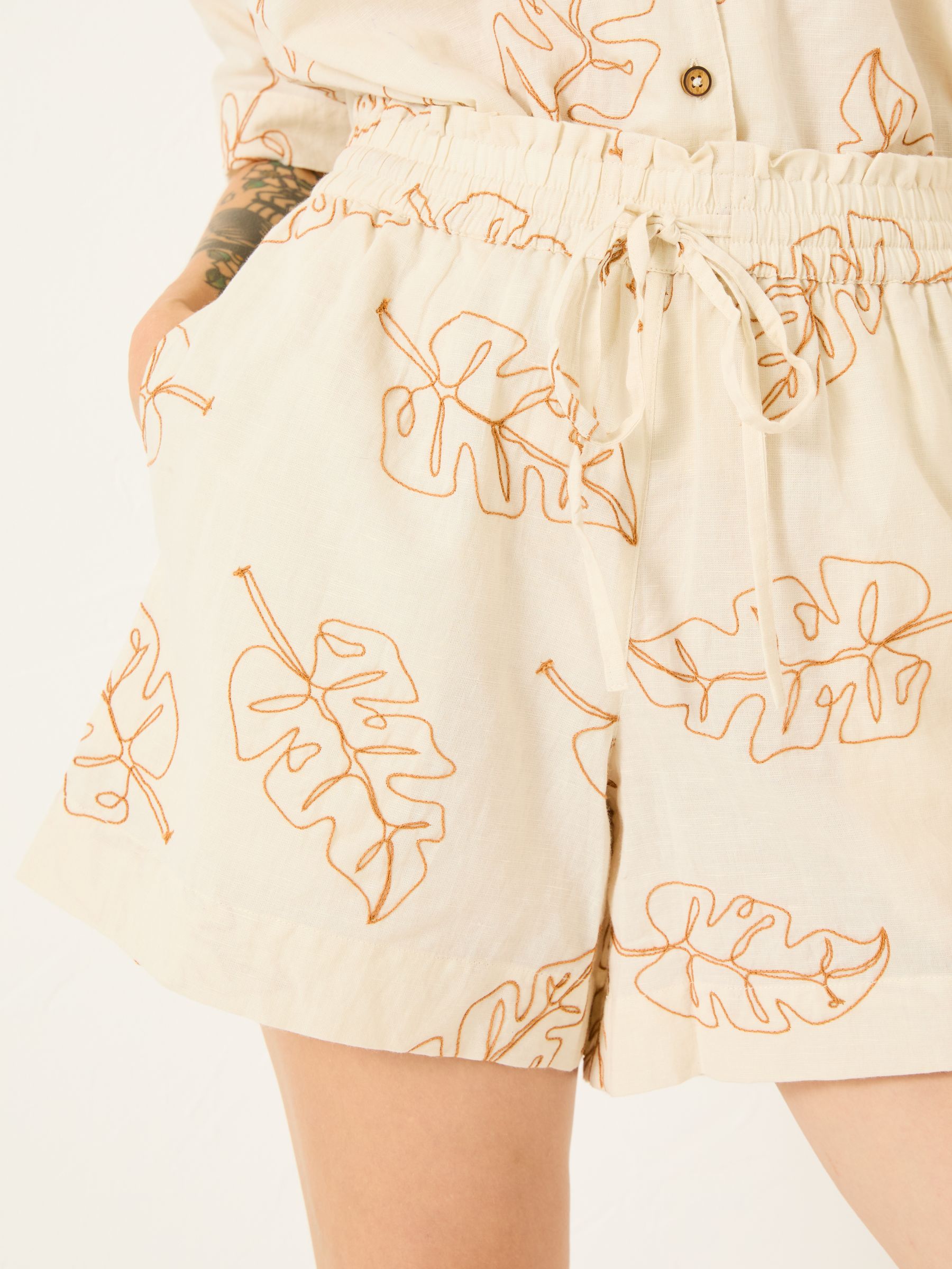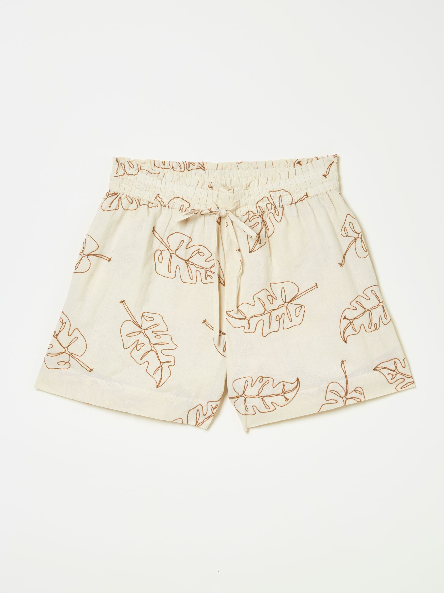 With its stretch waist, relaxed fit and pull-on style, the Leaf Embroidered Shorts are perfect for wearing around the resort, the pool or basically anywhere you want to look casual and stay cool. The all-over leaf embroidery offers warm-weather vibes; team them with the matching shirt for a head-to-toe holiday-inspired look. Relaxed paperbag-style silhouette and fitElasticated waist with drawcord adjusterPull-on style Model is 5’9”/175cm and wears UK size 8.