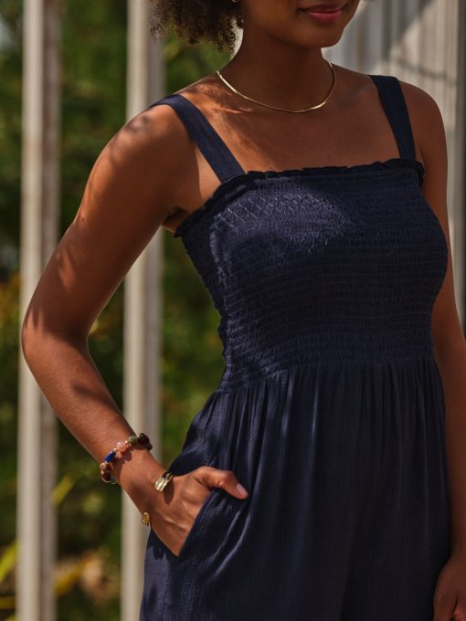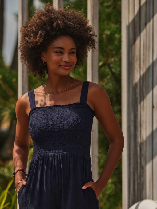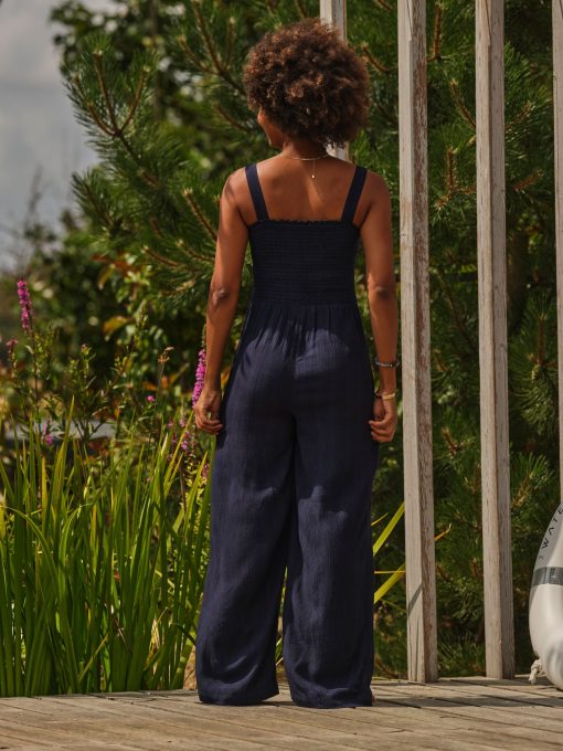 Light, effortless, and made for sunny days. Our beachwear jumpsuit features a flattering -shirred top and wide leg trousers for ultimate comfort.. This easy silhouette and sleeveless design make it perfect for everything from market strolls to chucking on over a swimsuit. Just add sandals and let the breeze do the rest.Short inside leg length 27" / 69cm.Regular inside leg length 27" / 69cm.Long inside leg length 29" / 74cm.
