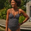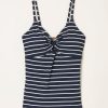 Classic with a feminine twist, this textured Breton stripe tankini top features a flattering fit and soft stretch fabric for all-day comfort. The ring detailing at the centre adds a stylish accent and a touch of elegance, while the timeless stripes keep it effortlessly chic. Pair with the matching bottoms for a coordinated beachside look.