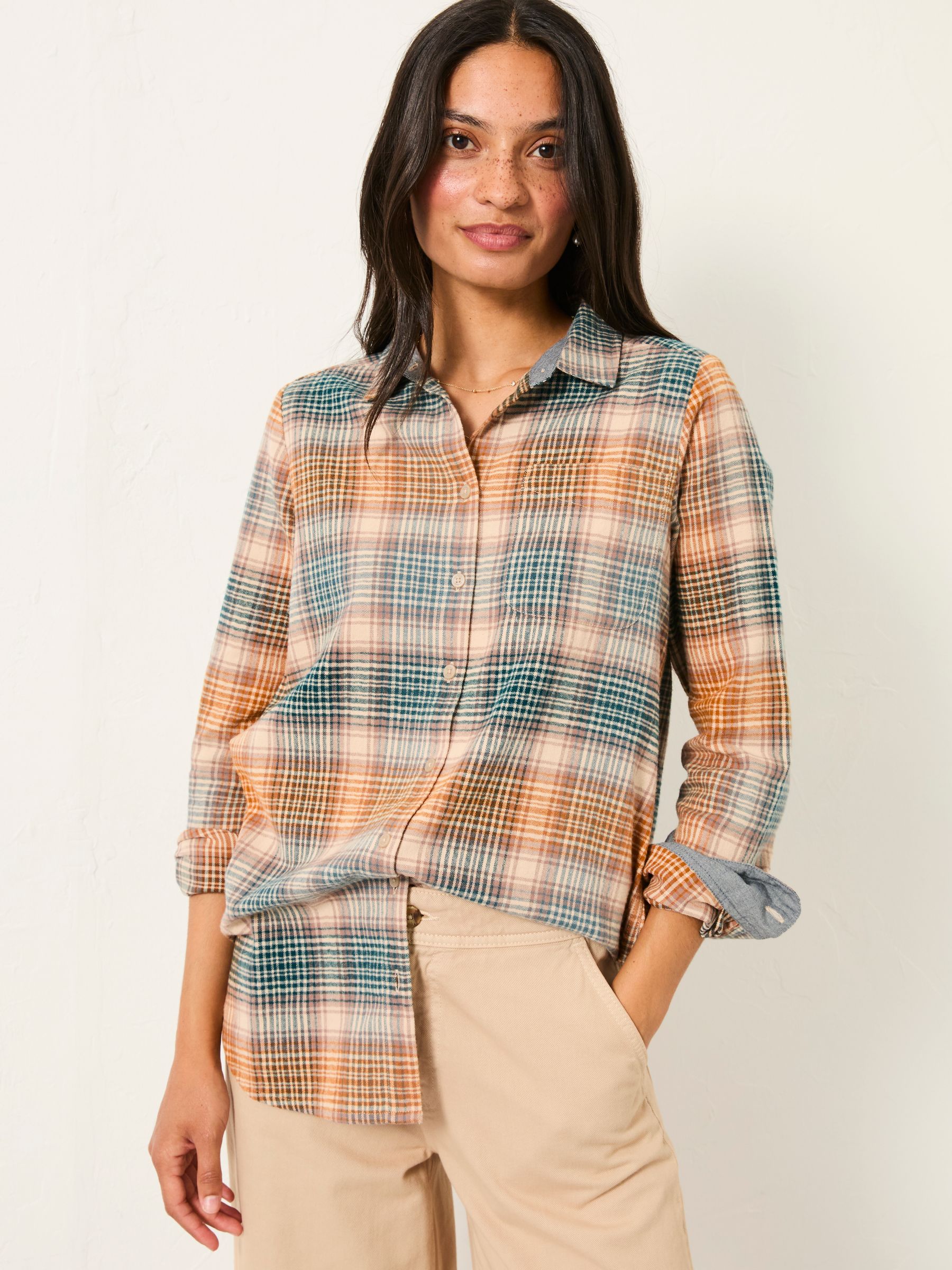 Step into laid-back confidence with our Olivia check shirt, the perfect blend of timeless style and modern ease. Crafted from soft, breathable cotton, this shirt features a tailored fit and bold check pattern that transitions seamlessly from casual mornings to spontaneous weekend getaways. Wear it open over a T-Shirt for a relaxed vibe or buttoned up for a smart-casual look – this is the go-to piece for those who live life with effortless style.Model is 5’9”/175cm and wears UK size 8