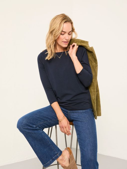 You can never have too many wardrobe essentials, and our Pip boat neck top is here to elevate yours. It is soft with a fitted feel for maximum comfort, it’s the perfect addition to your everyday lineup. Pair it with denim jeans for a casual weekend stroll, layer it with a jacket on cooler days or dress it up with a skirt. The boat neck and slightly longer sleeves add a classy touch to any look, making it an effortless way to upgrade your style.