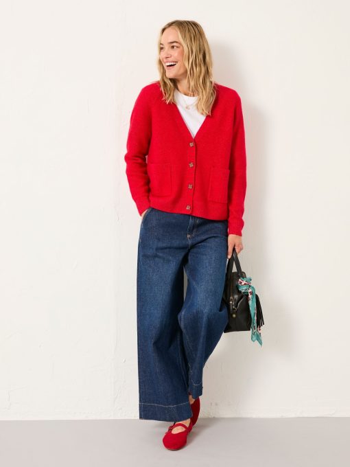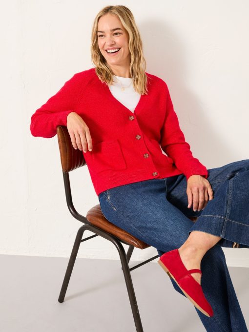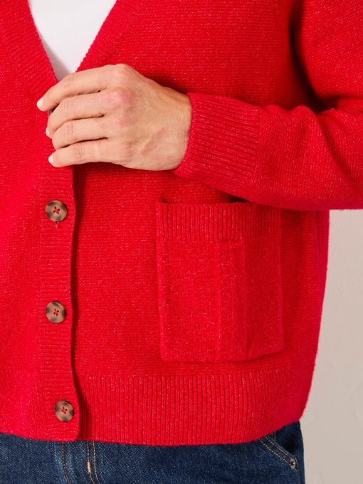 Fat Face Women’s Polly Red V Neck Knitted Cardigan | Red