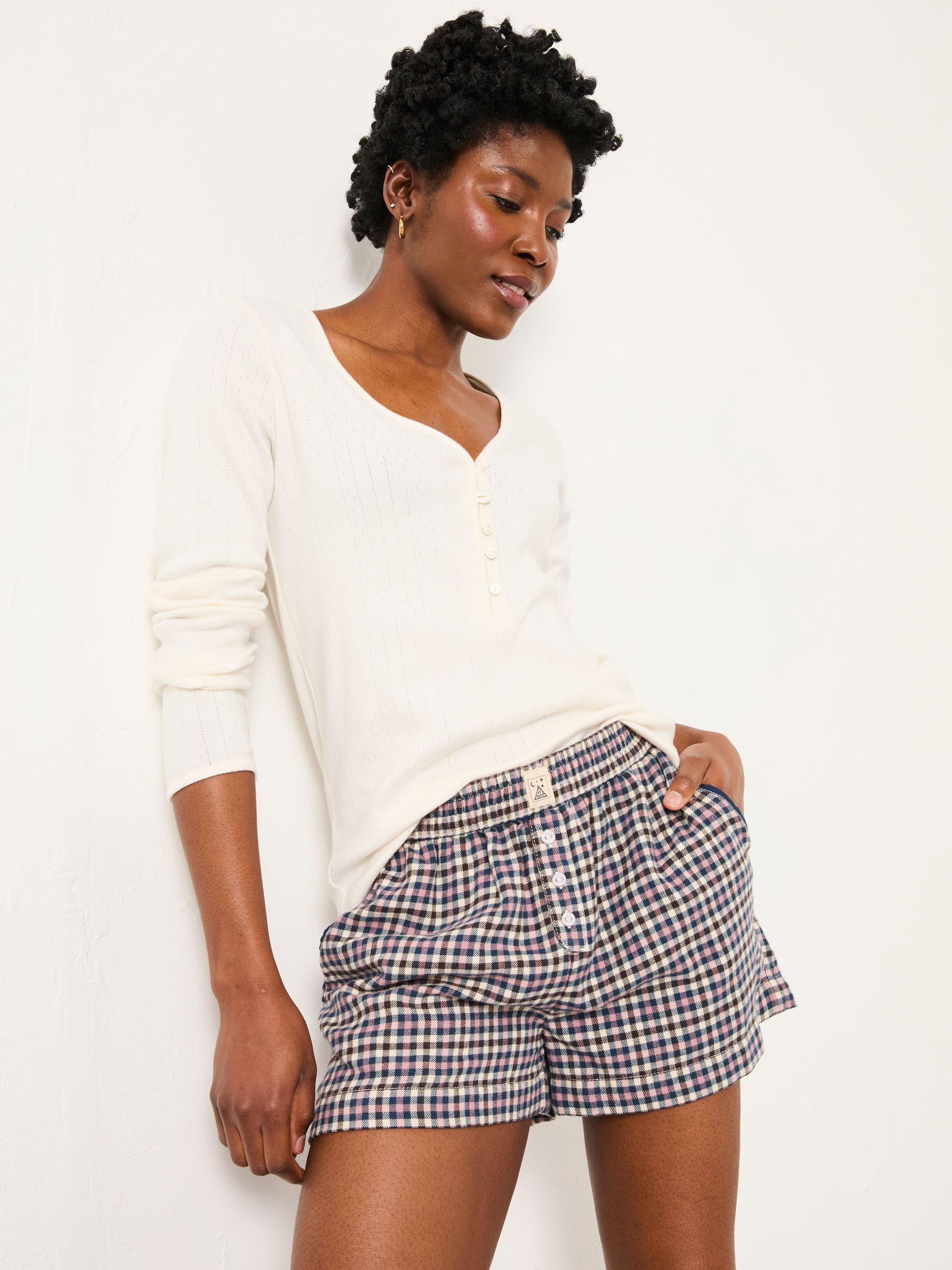 Fat Face Women’s Purple Mini Check Boyfriend Pyjama Shorts