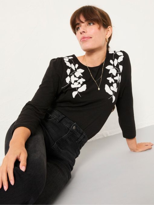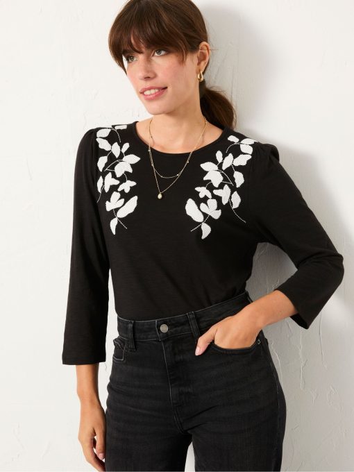 Our Ria applique detail top adds texture and interest to your everyday look – easy to throw on, just enough detail to stand out. Whether you’re heading out for coffee or dressing it up for dinner, it brings just the right amount of detail to elevate your look. Simply pair with jeans or trousers and you’re good to go.