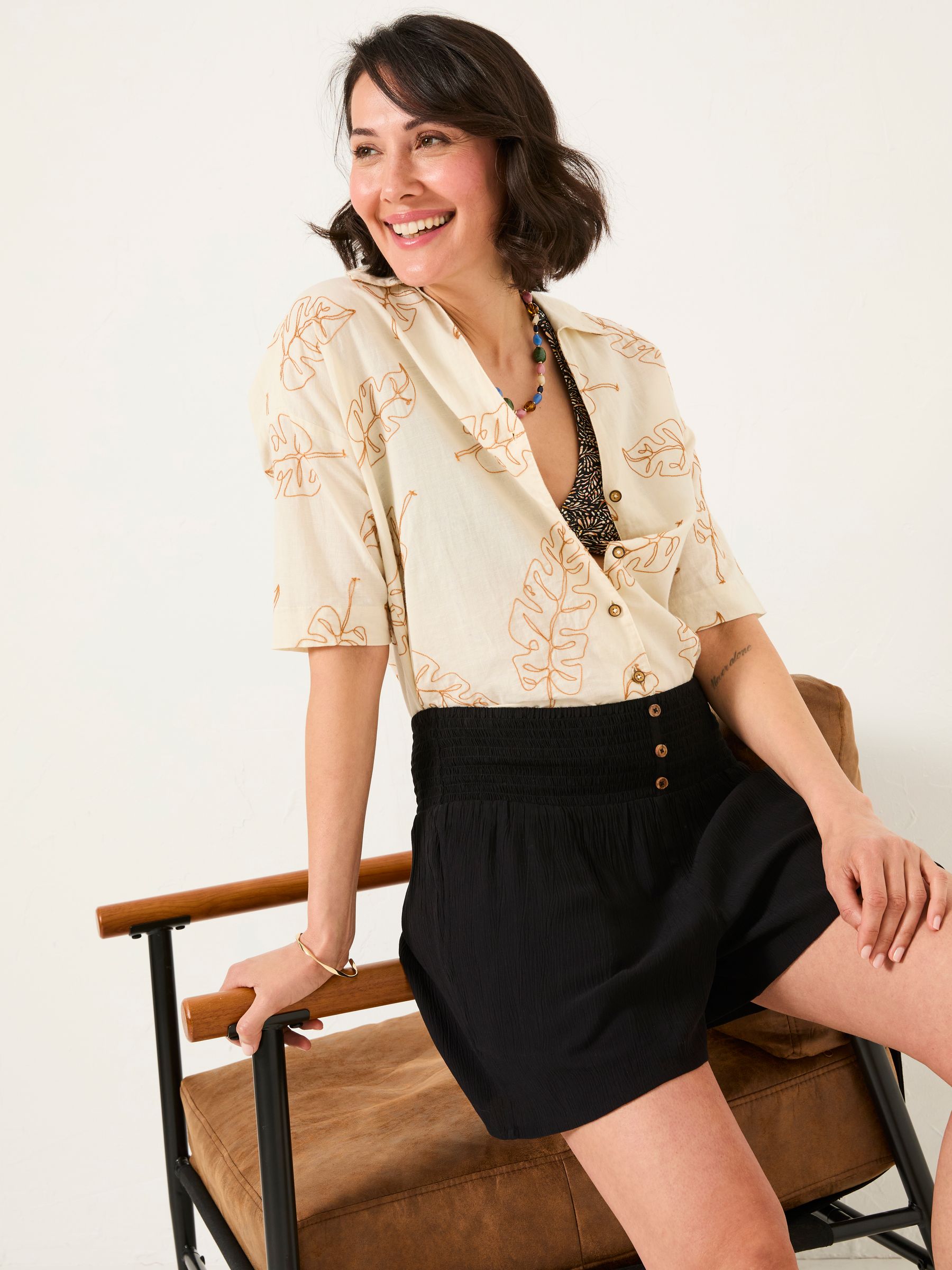 Our flippy shorts are the ultimate summer essential, whether you need a lightweight bikini cover-up or a stylish pair for dinner and drinks on vacation. Crafted from soft, breathable 100% Viscose, these shorts feature a drawstring and shirred waist for a comfortable, adjustable fit. With their loose silhouette and flowy feel, they’re the perfect choice for sunny beach days.Model is 5’8”/173cm and wears UK size 8Regular inside leg length 3" / 8cm.