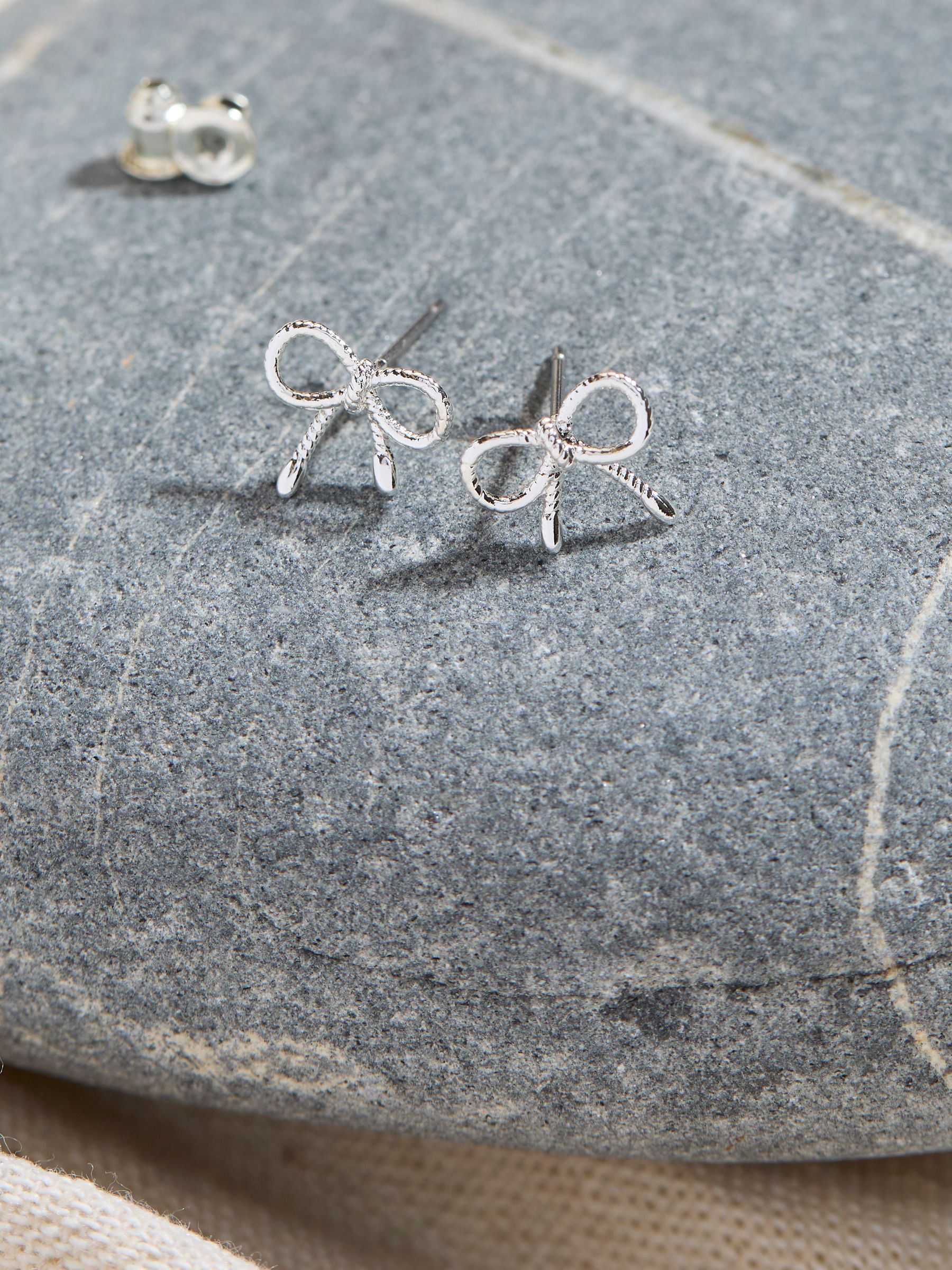 Make a statement in our silver toned bow stud earrings – the perfect option to elevate your look from day to night.
